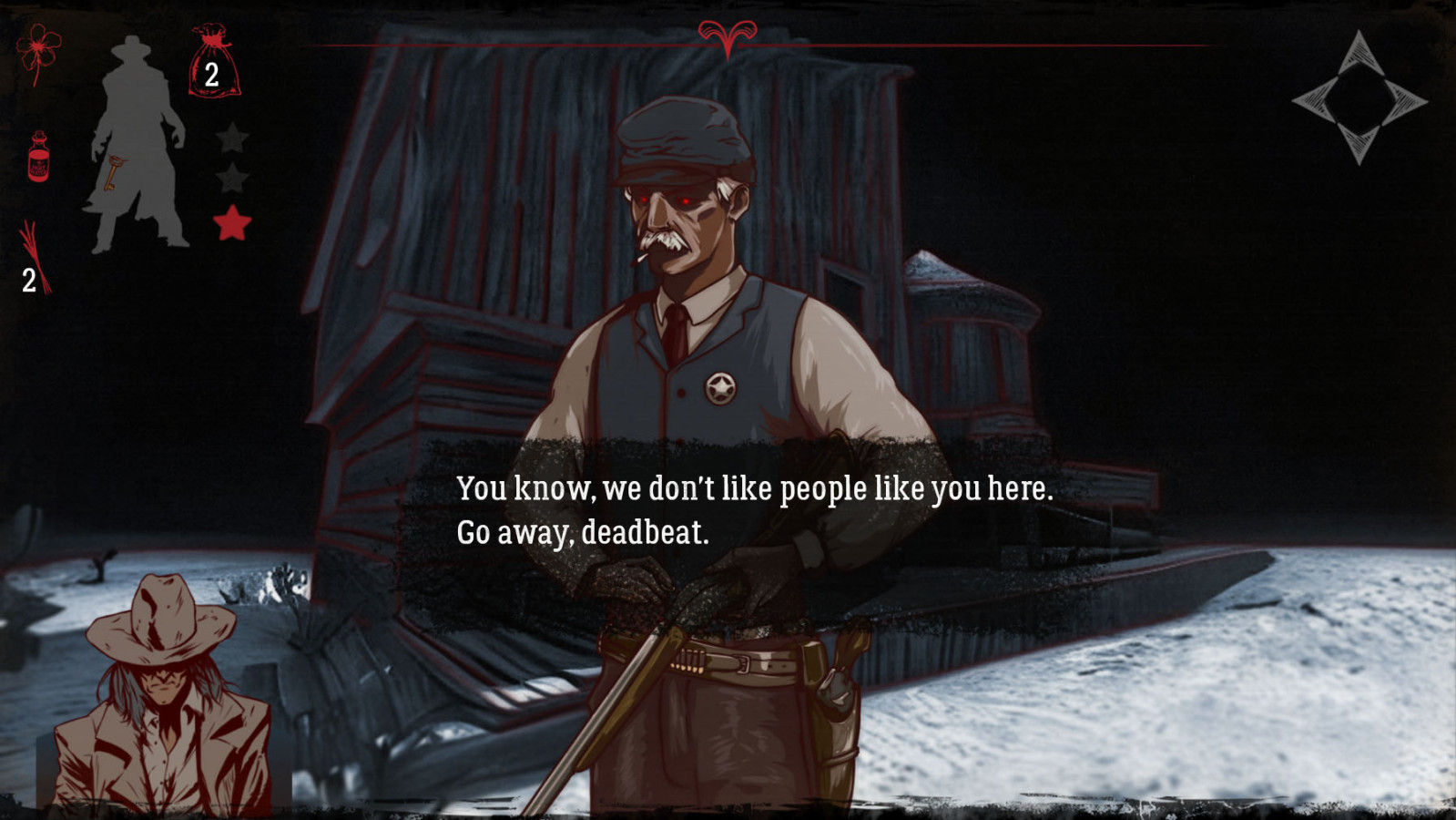 Ana karakter - zor bir geçmişe sahip sessiz bir kovboy