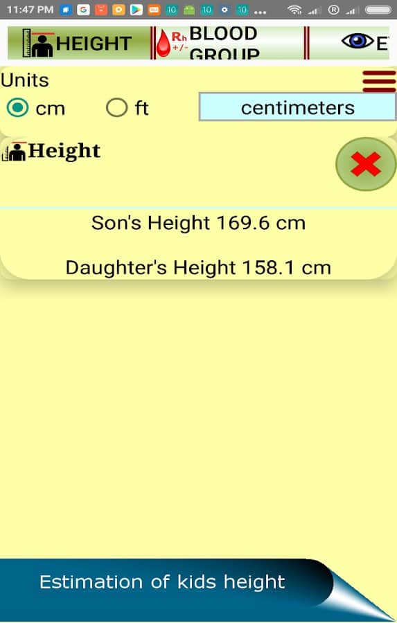- Gelecekteki çocuğun muhtemel boyu.