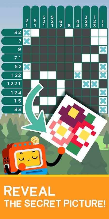 Quixel – Mantık Bulmacaları – Android için bir bulmaca oyunu, burada Japon bulmacalarını çözeceksiniz. Bu oyunda nonogramlar oluşturacak ve bunun için mantığınızı ve zekanızı kullanacaksınız. Oyundaki ana göreviniz, şifreli resimleri çözmek ve yeni uzaylı arkadaşınıza gezegenin en güzel yerlerini ziyaret etmesine yardımcı olmaktır. Kafes üzerindeki küpleri sayılara göre boyayın ve onların hayvanlara ve böceklere dönüşmesini izleyin. Oyunda 1000'den fazla eğlenceli piksel resmi, birçok görev ve misyon bulacaksınız, ayrıca bulmacalar. Gezegenin farklı köşelerinde seyahat edin ve bu oyunu her boş zamanınızda oynayın.