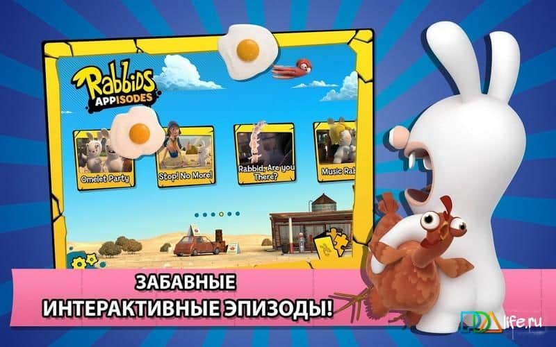 Rabbids Appisodes - birkaç yıl önce çıkan bir diğer Rayman Rabbits'te tavşanlar arka planda dans eden figürler olarak yer aldılar. Ancak bu komik beyaz tüylü dostlar oyuncular tarafından o kadar sevildi ki, ayrı bir franchise haline geldiler. Şu anda tavşan hakkında bir çocuk animasyon dizisi yayınlanıyor. Bu oyun, bu animasyonu etkileşimli unsurlarla birleştiriyor. Animasyon dizisine dayanan yedi inanılmaz hikaye keşfedin. Çizgi filmleri izlemekle kalmayacak, aynı zamanda mobil cihazınız aracılığıyla onlarla etkileşimde de bulunabileceksiniz. Gerçekten harika ve ilginç bir deneyim ortaya çıkıyor.
