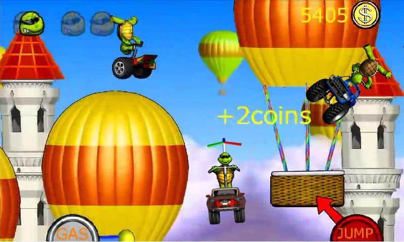 Cihazlar Yarışı 2 – Android oyununda geleceğin modern cihazlarıyla ekstrem yarışlar. Bu oyunda, rakipleriniz ve arkadaşlarınız eşliğinde çok tehlikeli pistlerde yarışacak olan Ninja kaplumbağayı kontrol edeceksiniz. Oyunda sizler için muhteşem rampalar, halkalar ve yokuşlarla dolu çok sayıda çeşitli seviyeler açılacak. Hemen oynamaya başlayın, atlayışlar yapın, heyecan verici numaralar gerçekleştirin ve böylece yeni cihazlar ve sıradışı kahramanlar satın almak için para kazanın. Rakiplerinizi geçin, onları cihazlarından düşürün ve bitiş çizgisine birinci gelerek daha fazla para kazanın. Bu oyunu oynarken keyifli vakit geçirin.