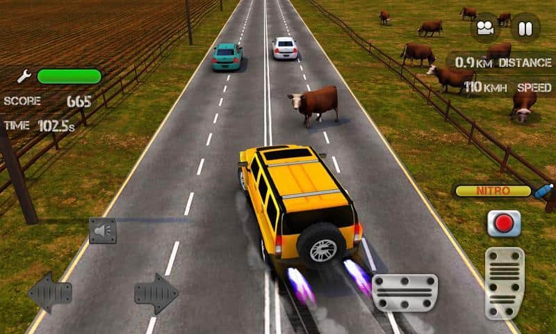 Trafik Nitro Yarışı - kendi aracınızla büyük bir araç akışında manevra yapmanız gereken harika bir arcade yarış oyunudur. Farklı yollarda yüksek hızda yarışın, yolda geçen ineklerden kaçınarak çarpışmalardan kaçının ve yolunuzda olabilecek diğer engellerden sakının.