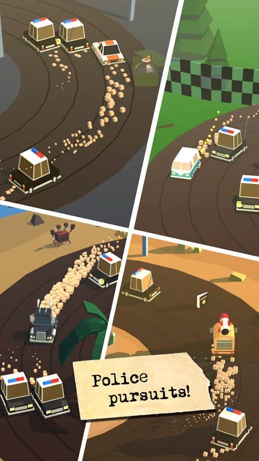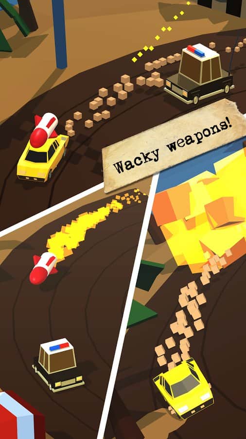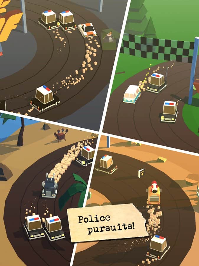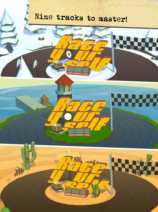 KENDİNİ YARIŞ – Android için bir arcade yarış oyunudur, burada daire etrafında giden bir aracı kontrol etmeniz gerekiyor. Binek aracınızın direksiyonuna geçin ve onu maksimum hızlara ulaşacak şekilde hızlandırın, daire etrafında koşarken yolunuzdaki tüm engelleri aşın. Oyunun zorluğu, yolda sürekli polis arabaları ve engellerin belireceği gerçeğidir, hepsini aşmaya çalışın ve roketler gibi sayısız para ve bonus toplayın. Mümkün olan en kısa sürede mümkün olduğunca fazla tur atmaya çalışın, beliren engeller arasında manevra yaparak. Her yeni seviyede oyunun zorluğu artacak ve daha fazla polis arabası eklenecek.