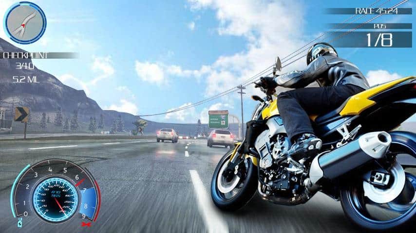 Yarış Moto 3D – Android için bir yarış oyunudur, burada motosikletinizi yönlendirecek ve sokaklarda ve yoğun yollarda yarışacaksınız. Motosikleti kontrol altına alın ve onu yoğun trafikle dolu çeşitli yollarda sürün. Büyük bir hızla ileriye doğru fırlayın, önünüzde giden araçları geçin ve yoldaki engelleri aşın. Risk alın ve araçları mümkün olduğunca yakın geçin - bunun için ek puanlar ve bolca adrenalin kazanacaksınız. Oyun, basit ve akıcı kontrolleri ile sizi memnun edecek ve sonsuz oyun modu ile keyifli zaman geçirmenizi sağlayacak.