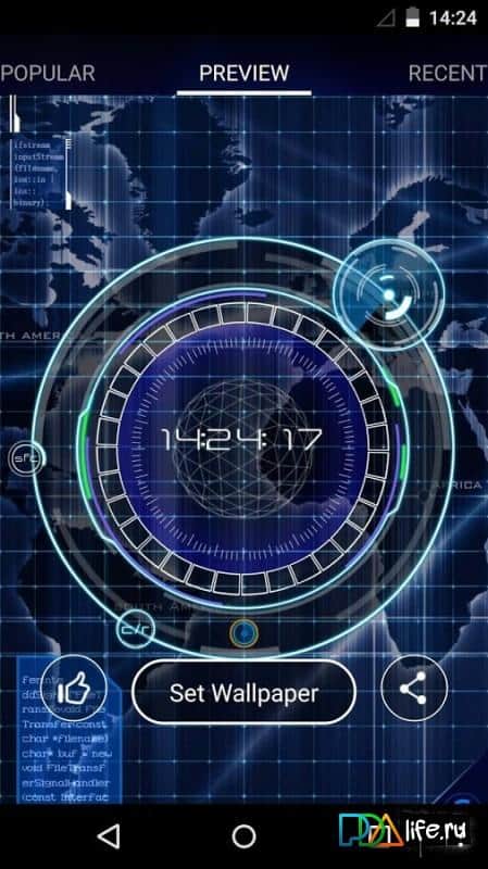 Radar Dijital Saat - Casus veya süper ajan olmayı hayal ettiniz mi? Artık bu gerçek, bu duvar kağıdı sizi öyle birine dönüştürecek. Ekranda saati gösterir ve aynı zamanda ekranınızı tarayarak bir radar haline getirir ve sizi gerçek bir süper kahraman yapar. Sürekli radar döngüsü nedeniyle bataryaya oldukça talepkardır. Ama buna değiyor, çok basit bir ayar, tek üzücü nokta herhangi bir ayarın olmaması, yani rengi veya arka planı değiştiremeyeceksiniz. Ayrıca ekrana dokunduğunuzda ilginç bir animasyon var, tarayıcı aktive olacak ve bir süre sonra kapanacak. Ama yine de cihazı elinize aldığınızda görevde bir casus gibi hissetmek oldukça hoş.