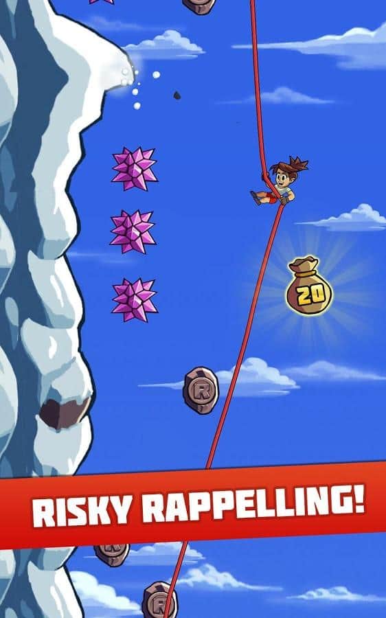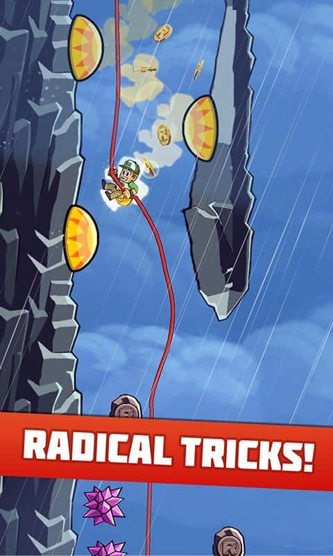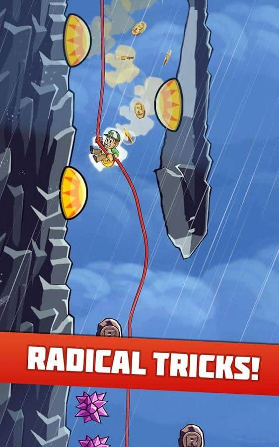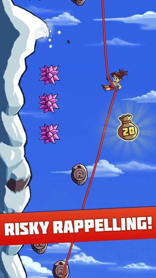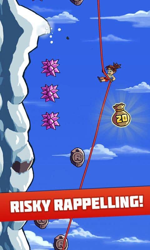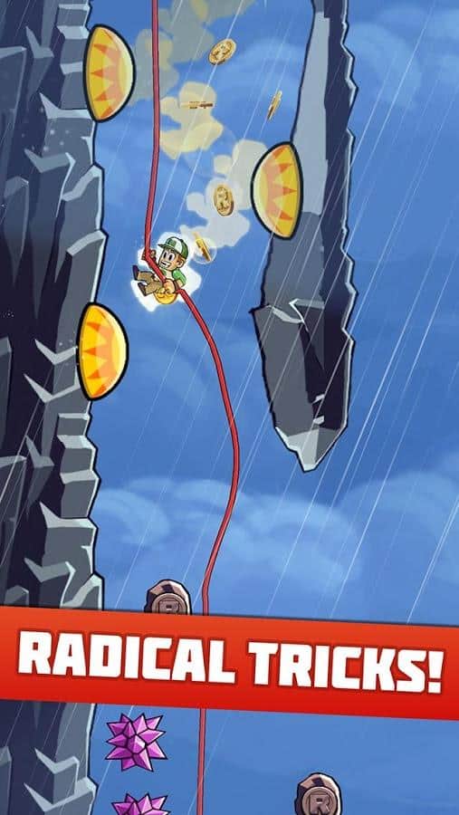 Radikal İniş - yüksek bir dağdan inen bir dağcıyı yöneteceğiniz bir arcade oyunudur. Kendinize uygun bir kahraman seçin, her birinin kendine özgü yetenekleri ve özellikleri vardır, kayalıklardan atlayın ve ip üzerinde inin, tüm engelleri aşarak altın paraları toplayın. Bu oyun, heyecan ve adrenalin tutkunları için tasarlanmıştır. Dağdan inin ve tehlikeli numaralar yaparak ek bonuslar kazanın. Bu oyundaki tüm seviyeler rastgeledir ve seçtiğiniz karaktere bağlı olarak değişir. Arkadaşlarınızla yarışın ve oyundan maksimum heyecan alın.
