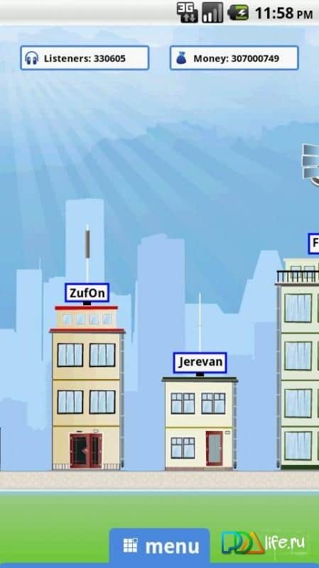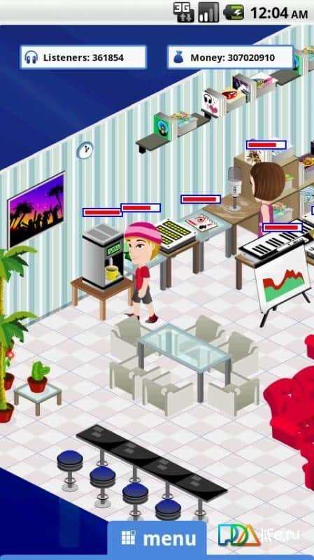 Radyo Tycoon – gerçek zamanlı çalışan bir radyo istasyonunu kontrol edeceğiniz Android simülatörü. Radyo istasyonunu yönetin, sevdiğiniz müziği dinleyin, arkadaşlarınıza mesajlar gönderin ve en önemlisi, kendi radyonuzdan iyi paralar kazanarak zengin olun. Radyo gerçek zamanlı çalışır ve oyunu oynamadığınızda bile kitlelere yayın yapmaya devam eder. Facebook hesabınızla oyuna giriş yapın ve arkadaşlarınızı katılmaya davet edin ya da radyonuza rakip olmaları için davet edin. Para kazanın ve stüdyonuz için yeni kaliteli ekipmanlar satın alın, mekanların görünümünü değiştirin. Yayında reklam döndürerek daha fazla para kazanın.
