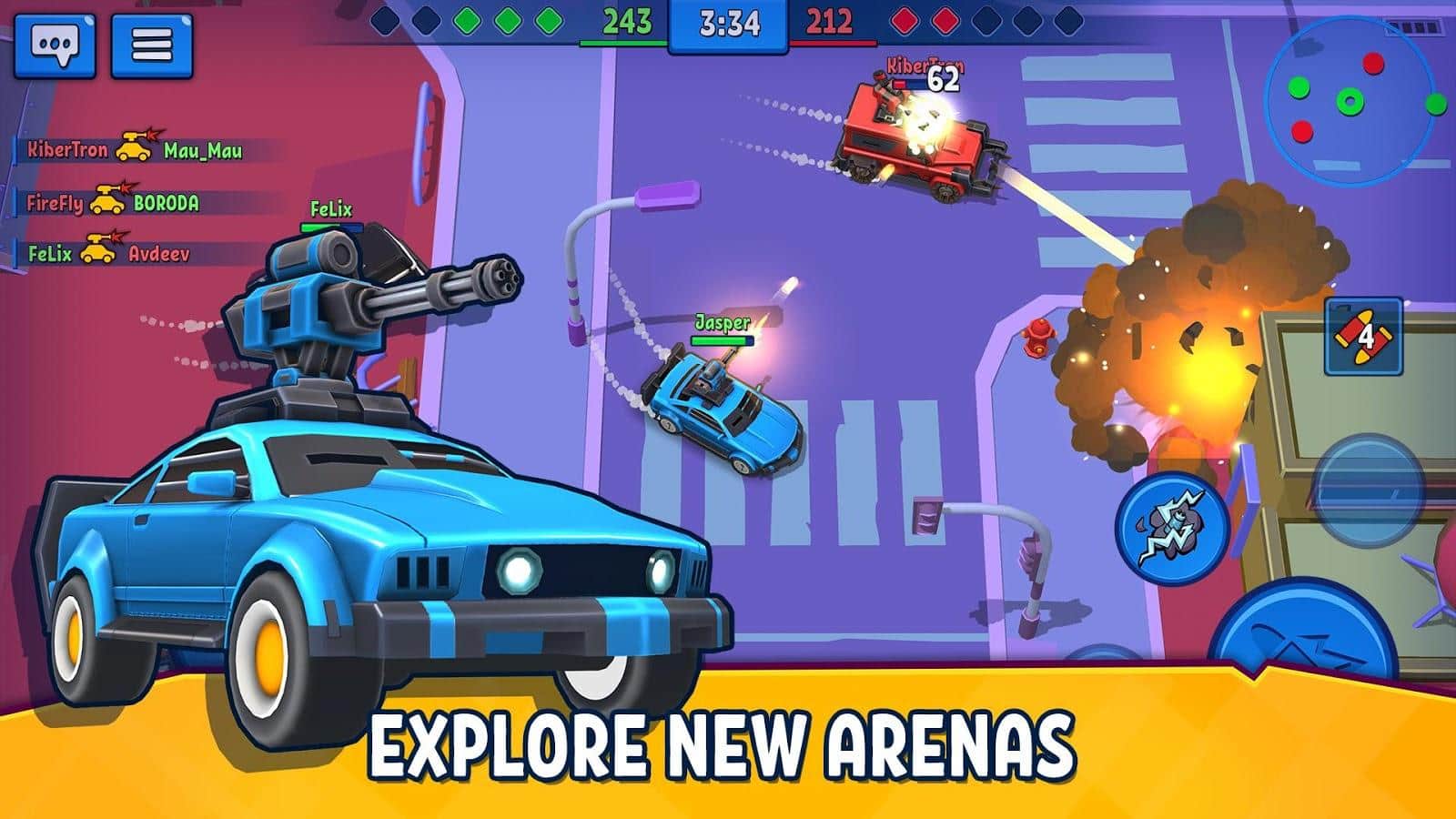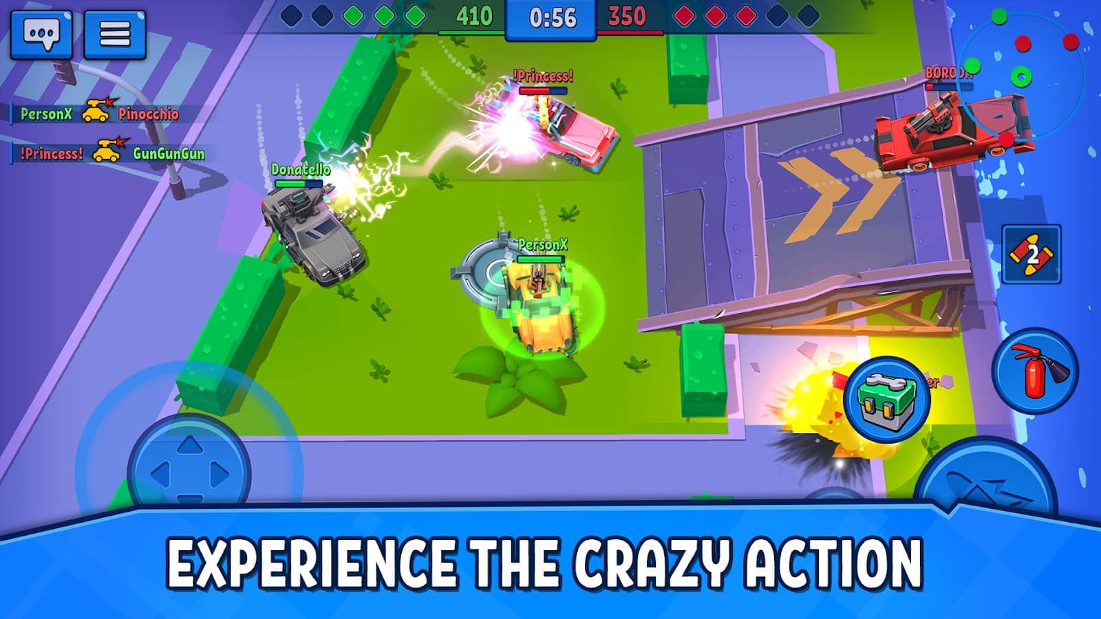 Araç Gücü Öfkesi - Online Araç Dövüşleri, akıllı telefonunuz için aksiyon unsurları içeren arcade bir online nişancı oyunudur. Bu oyunda en iyi oyunculardan veya arkadaşlarınızdan oluşan hayalinizdeki takımı toplayabilir ve çeşitli ölüm araçlarıyla savaşa çıkabilirsiniz. Farklı haritalarda yüzlerce silah çeşidi kullanarak 5'e 5 takım savaşlarına katılın. Kariyerinize en alttan başlayın, mevcut araçlar listesinde bir araç seçin ve onu mümkün olduğunca geliştirin. Zamanla daha güçlü araçlar satın almak için para ve deneyim kazanacaksınız. Turnuvalara katılın, savaş taktiğinizi planlayın ve yolunuzdaki her şeyi yok edin. Bunun için elinizde blasterlar, toplar, dikenler, roketler, makineli tüfekler ve daha fazlası olacak.