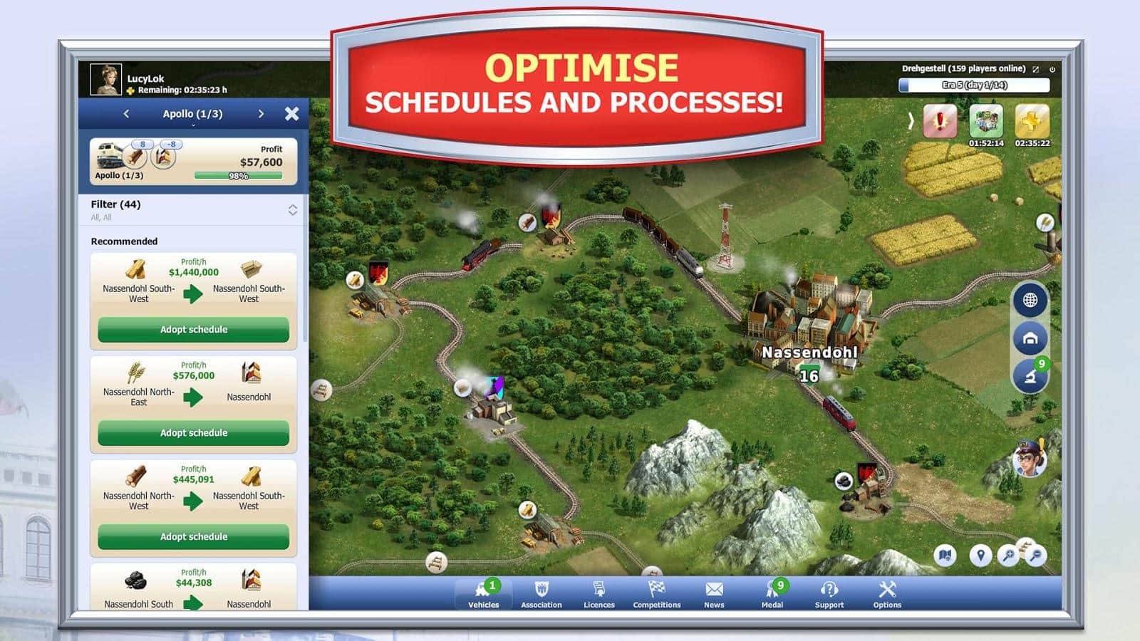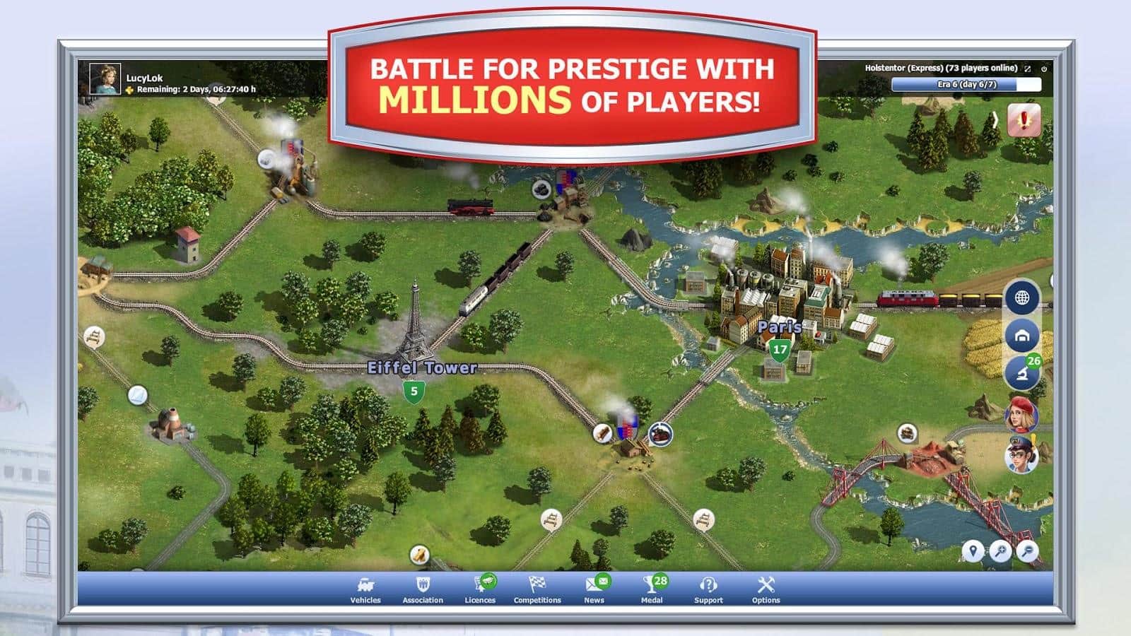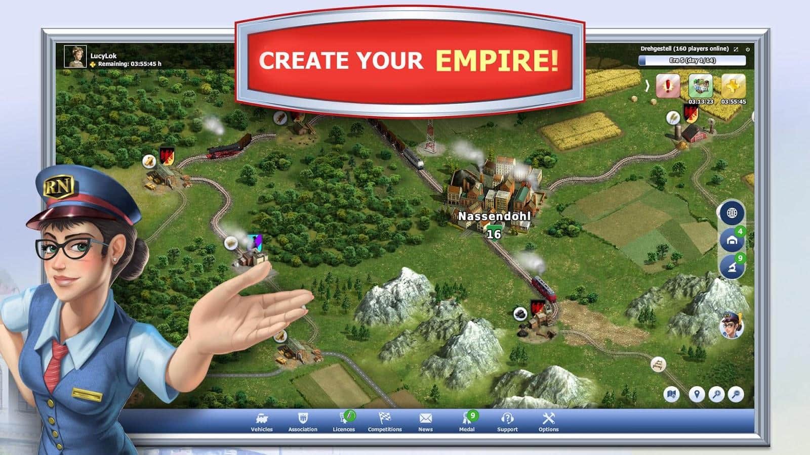 Demiryolu Ulusu dünyasında insanlar henüz demiryolu taşımacılığı ve onun avantajlarıyla tanışmamış durumda, bu yüzden onları mutlaka tanıştırmak gerekiyor. Bunu ilk yapan olmak en iyisidir, böylece rakiplerinizden önce bir avantaj kazanmış olursunuz, kendi şirketinizi aktif bir şekilde geliştirerek. Yeni güzergahlar açmak ve büyük metropolleri birbirine bağlamak, trenlerin hareketini optimize etmek ve daha fazla kar elde etmek önemlidir. Üstelik, en iyi lokomotifleri ve setleri satın alarak, etkileyici sonuçlar elde etme potansiyelini artıracak teknik yenilikleri takip etmek de gereklidir!
