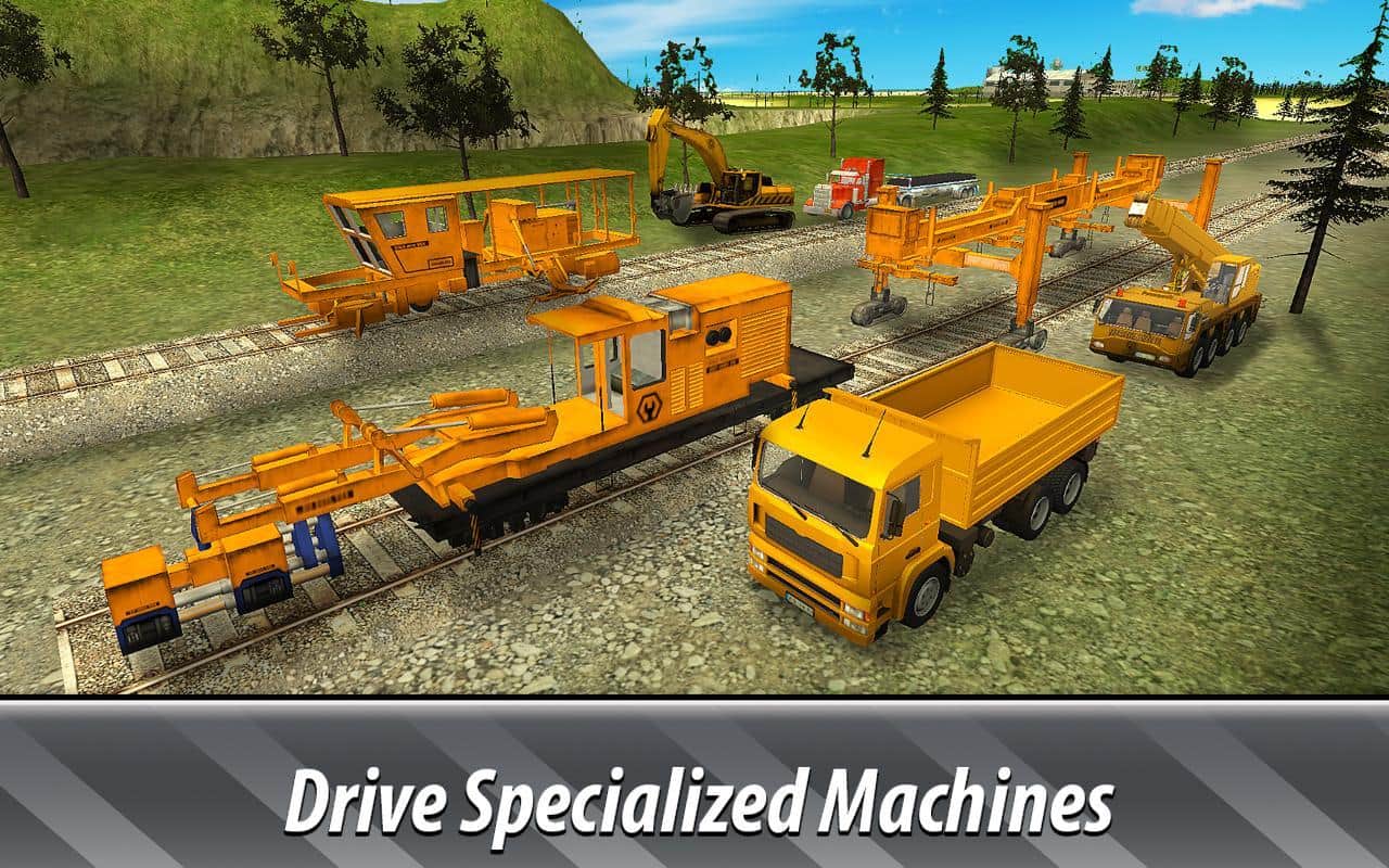 Demiryolu İnşaat Simülatörü - demiryolları inşa et! - Android için bir simülatör, burada demiryolu inşaatını yöneten bir yönetici rolünü üstleneceksiniz. Bu oyunda, sıfırdan demiryolu inşa etmek ve gerekli tüm görevleri yerine getirmek sizin göreviniz olacak. Tüm çalışma aşamalarını takip edin ve inşaat için alanı temizlemeye başlayın. Kamyonlardan, vinçlerden ve buldozerlerden başlayarak modern ekipmanları yönetin ve kaynaklı vagon ile ray döşeme makinesi ile devam edin. İki inşaat alanında hareket edin ve tüm görevleri belirtilen süre içinde tamamlayın. Oyun, size büyük bir ekipman parkı, iki inşaat alanı, çok sayıda görev ve iyi grafiklerle keyif verecek.