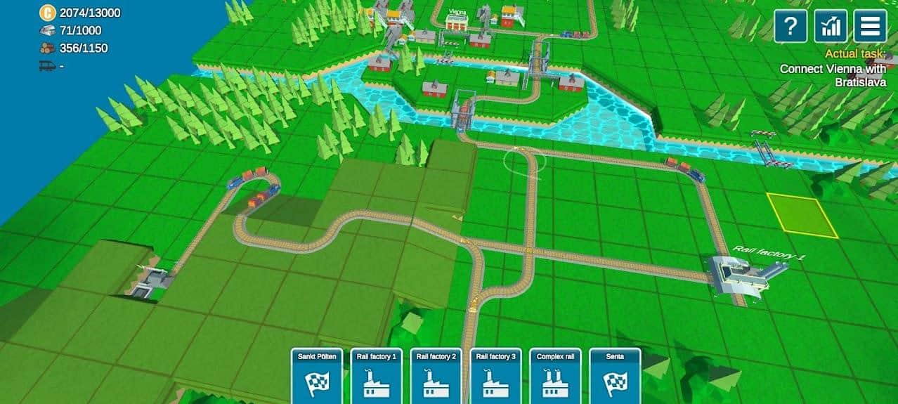 Demiryolu Karoları - Daha iyi bir demiryolu inşa etmek için yolları kendiniz oluşturmalı ve istasyonları modernize etmelisiniz, yeni raylar yaratarak. Özel fabrikaları kullanarak tren rayları oluşturun ve bunları boş arazilerde döşemek için deneyler yapın. Birkaç istasyonu döşeme yolları ile birleştirerek, kendi demiryolu şirketinizi birkaç gün içinde geliştirin. Yeterli miktarda kaynak toplayın ve ardından bunları iş sürecinde ortaya çıkacak gerekli amaçlar için kullanın.