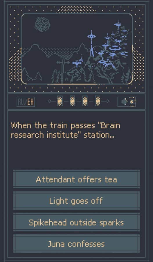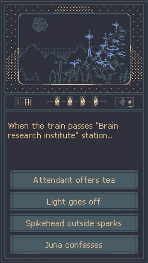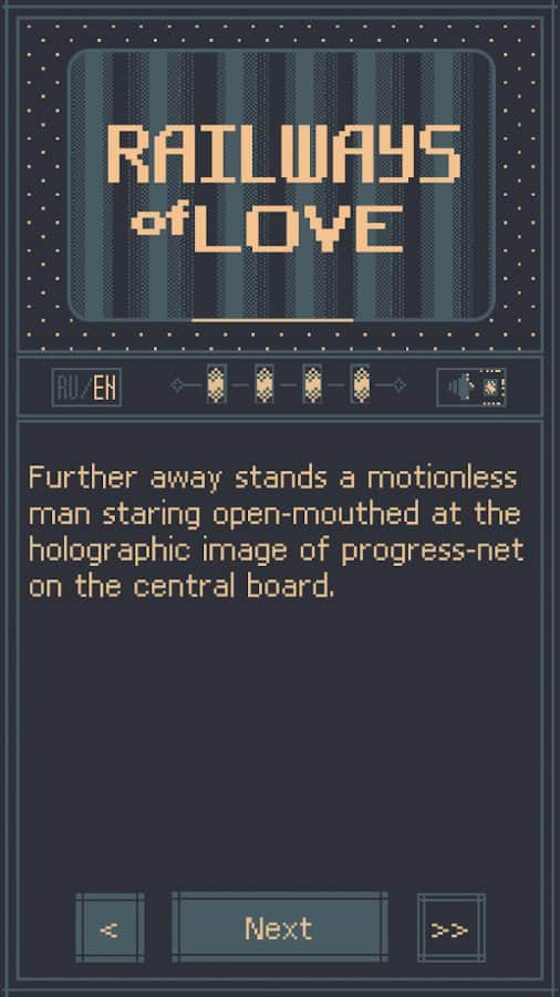 Aşk Demiryolları – Android için etkileşimli bir oyun, burada üç kişinin kaderini etkileyeceksiniz. Bu oyunda, geleceğin şehrinden evlerine dönen iki adam ve bir kadının bulunduğu bir vagona geçeceksiniz. Bu oyunda, kahramanlara duygularını itiraf etmeleri konusunda diyalogları sırasında yardım edeceksiniz. Bunu yapmak kolay olmayacak, ancak hikaye ilerledikçe her bir kahramanın geçmişi ve yaşadıkları dünya hakkında daha fazla bilgi edineceksiniz. Kahramanların konuşmalarını ve ayrı ayrı kaderlerini etkilemenizi sağlayacak ek fırsatları keşfedin.