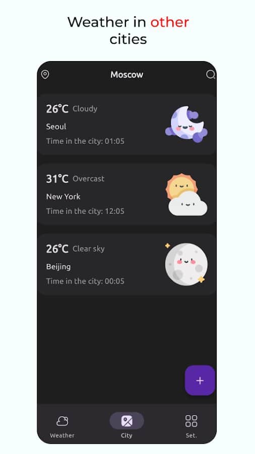 - Kendi şehrinizi seçme veya diğer yerlerde hava durumunu takip etmek için bir kart ekleme imkanı