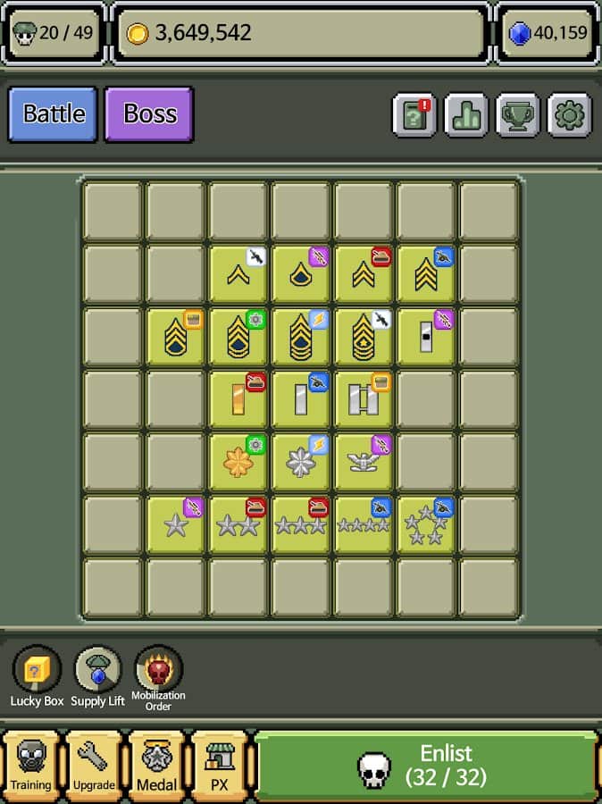 Rütbe Rozeti - Süper Patlama - dikkat, ciddi bir savaş bekleniyor! İyi bir şekilde hazırlanın ve iyi stratejiler geliştirin. Seçilecek farklı yollar, unvanlarla madalya koleksiyonu toplamak, birçok düşmanı yok etmek ve savaş ruhu. Bu, herkes için basit bir oyun; en önemlisi anlamak ve oynamayı öğrenmek, deneyim daha sonra gelir. Kombinasyonlar, ordu güçleri üzerinde deney yapın, patronlarla savaşın, ilginç görevleri geçin ve eğlenin. Üssü geliştirmek ve güçlü teknolojiler satın almak için yeterli miktarda para toplayın, böylece zafer şansınızı artırın.