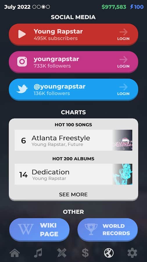 Müzik içimizde özel duyguları uyandırır, bu nedenle mevcut yönlerde kendi stilinizi bulmak ve müzik parçaları yaratmaya başlamak önemlidir. Hareket etme zamanı: müzik sayesinde ünlü olacak kişi olun. Kendi stüdyonuzu kurun, bir ekip oluşturun, harika şarkılar ve klipler yaratın, bir yıldız olarak gelişin, kendi ürünlerinizi yapın, konserlere katılın, yeni insanlarla tanışın ve önemli sözleşmeler imzalayın. Dünyaca ünlü olmanız ve en değerli ödüllerin çoğunu almanız önemlidir!