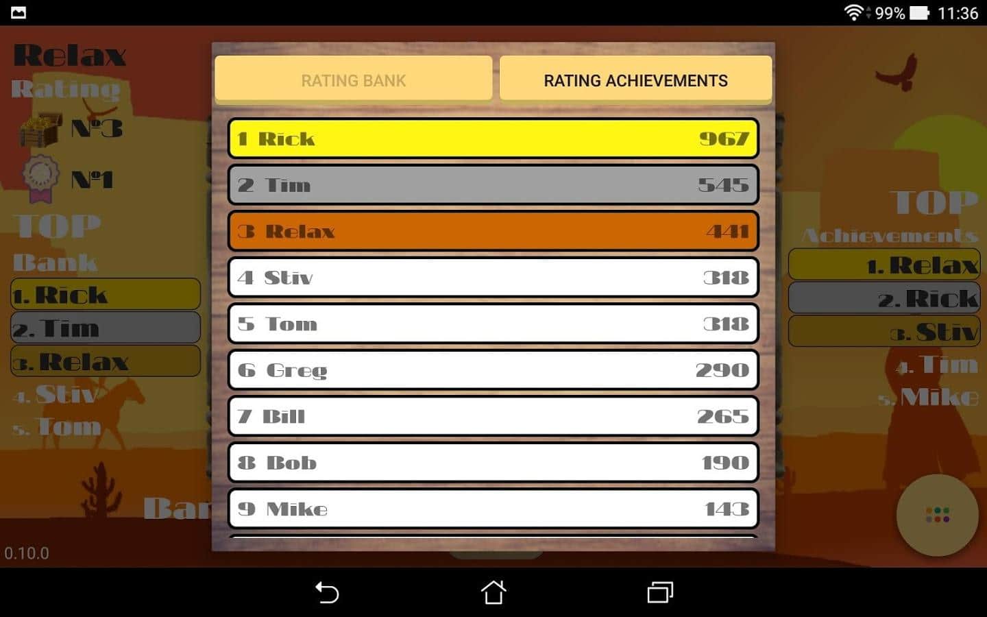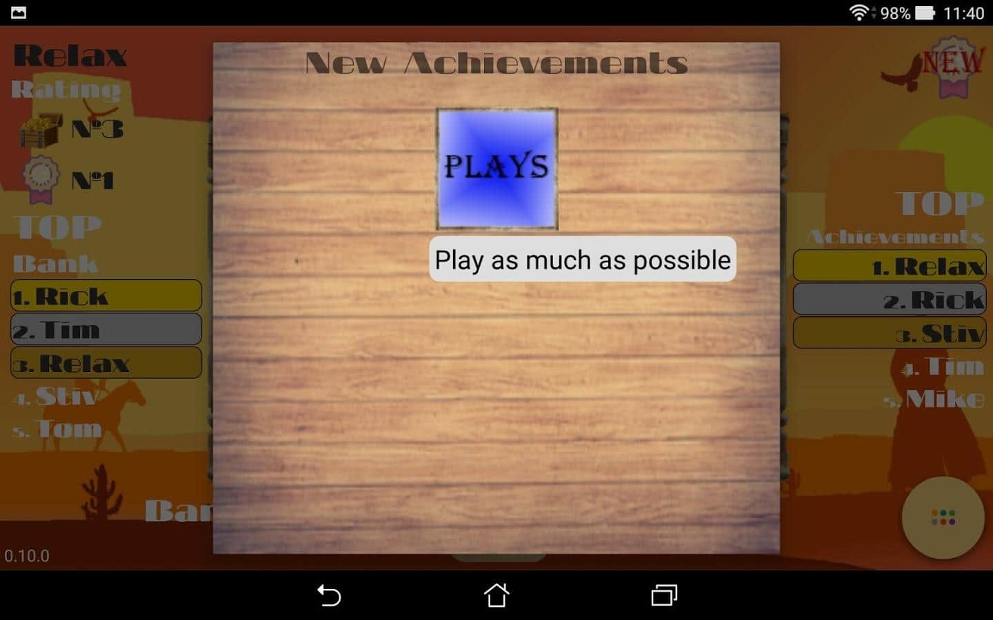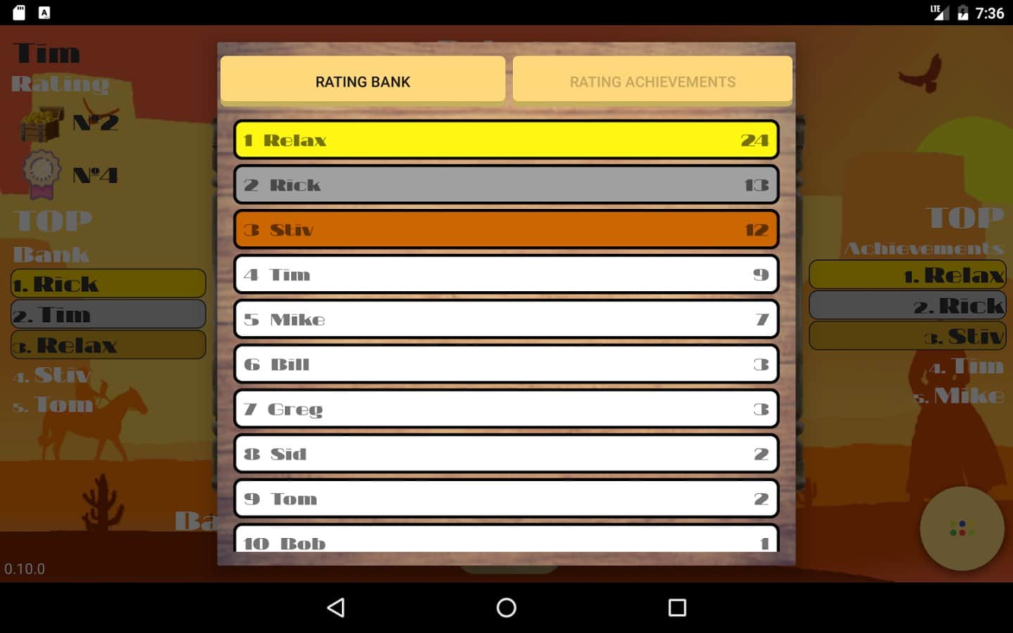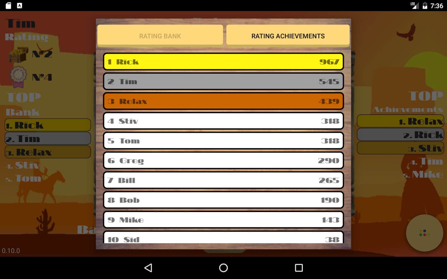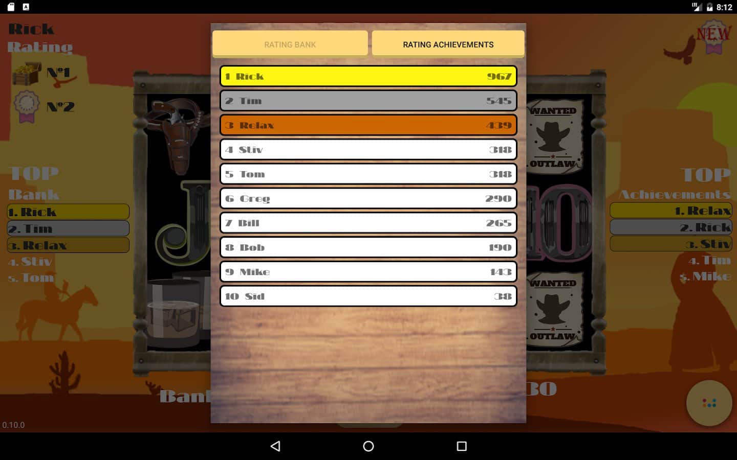 Değerlendirme Slotları – Android için bir slot makinesi, burada şansınızı gerçek anlamda test edebilirsiniz. Bu oyun, ana görevinizin maksimum miktarda madeni para ve başarı toplamak olduğu Vahşi Batı tarzında tasarlanmıştır. Bahislerinizi yapın ve slot makinesini çalıştırın, makaraların döndüğünü ve kazanç hatlarının oluştuğunu izleyin. Oyunda toplam 13 kazanç hattı bulunmaktadır, hepsini elde edin. Lider tablosunda daha üst sıralara çıkın ve burada liderlik pozisyonlarını alın, arkadaşlarınız ve dünya genelindeki diğer oyuncularla yarışın. Her gün sıralama tablosu güncellenecek, bu yüzden fırsatınızı kaçırmayın. Süper oyunu aktive edin ve tüm madeni paraları ve başarıları toplayın.
