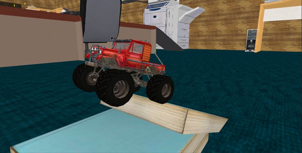 RC Kamyon Yarış Simülatörü 3D – kendi küçük, ama büyük lastiklere sahip aracınızı kullanıyorsunuz. Yarış alanları: çalışma masası, oturma odası, ofis, sunucu odası ve daha fazlası olacak. Yüksek hızlarda yarışıyoruz ve belirlenen parkurdan düşmemeye çalışıyoruz. Yeni jipleri açma imkanı var. Ancak bunun için tüm parkurları hızlı ve sorunsuz bir şekilde geçmek gerekiyor.
