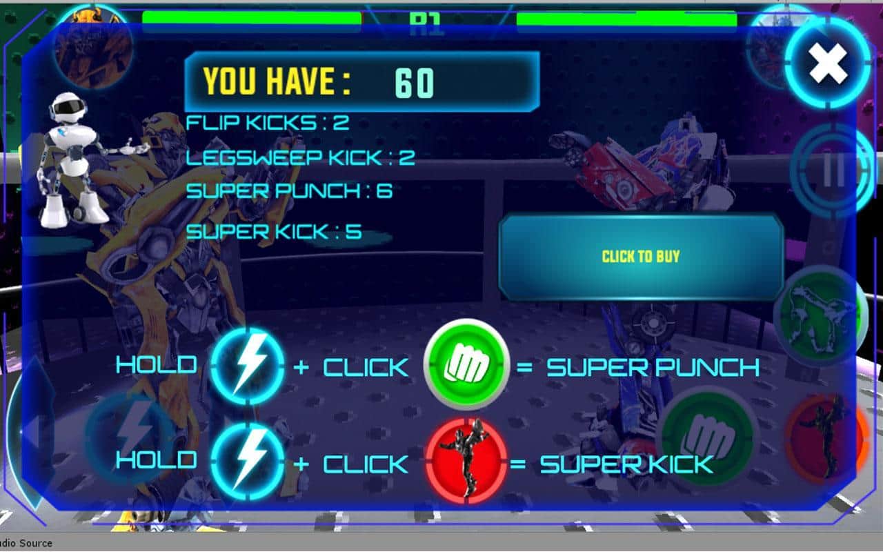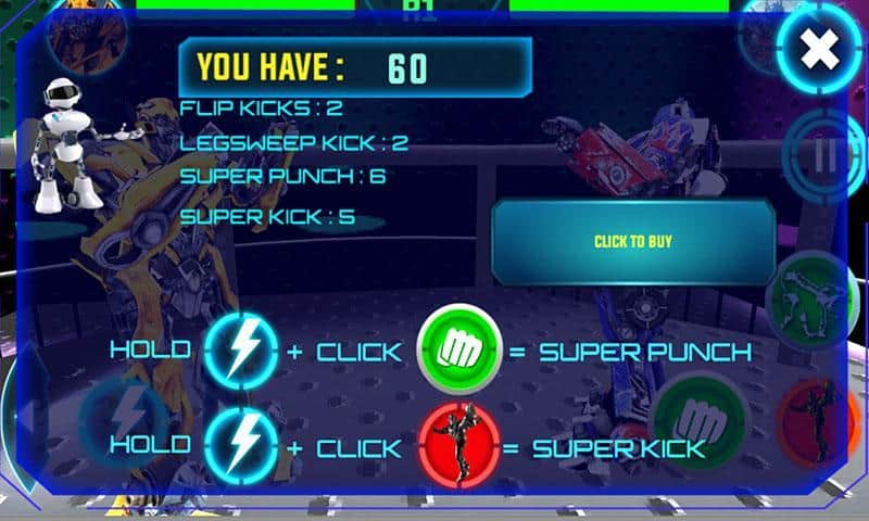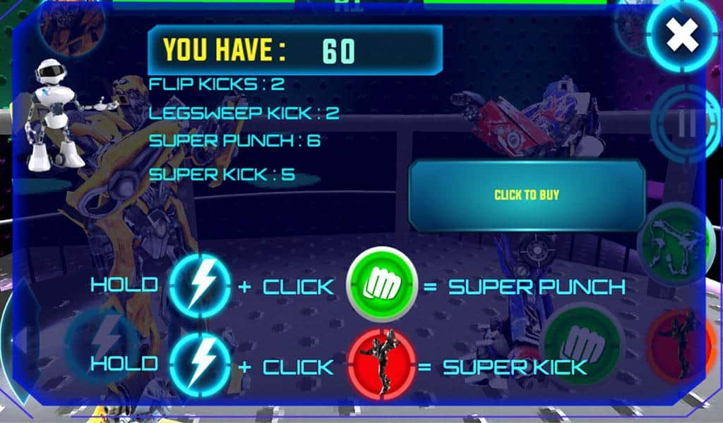 Gerçek Robot Ring Dövüşü – arenada dövüş robotlarının heyecan verici dövüşlerine katılın. Oyunda sunulan robotlardan birini seçin ve ringe çıkarın. Bu oyundaki her robotun kendine özgü yetenekleri ve kabiliyetleri vardır, bunları dövüşte kullanın ve rakibinizi yenin. Robotun her hareketini yönetin ve rakibinize güçlü yumruklar ve tekmelerle saldırın. Yıkıcı darbeler indirin ve rakibin saldırılarını engelleyin. Tüm heyecan verici dövüşlere katılın ve olağanüstü zaferler için değerli ödüller kazanın. Oyun, oyunculara basit ve anlaşılır bir kontrol sunmanın yanı sıra robotunuzu geliştirme imkanı da sağlayacak.