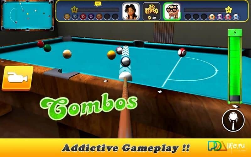 Gerçek Snooker Bilardo Havuzu 2 – Android için çeşitli oyun türleriyle gerçekçi bir bilardo oyunu. Oyunda, becerilerinizi geliştirebileceğiniz pratik modu mevcut ve sonrasında diğer oyunculara meydan okuyarak onlarla yarışabilir ve puan toplayabilirsiniz. Misketi elinize alın, nişan alın ve toplara vurun, onları doğru deliklere sokun. Maçları kazanın ve kazandığınız puanlarla mağazadan yeni misketler ve masalar satın alın. Bilardo oyunu hiç bu kadar gerçekçi olmamıştı; harika fizik ile sizi mutlu edecek. Tek oyunculu modda ya da çevrimiçi modda arkadaşlarınızla oynayın. Bilardoda gerçek bir profesyonel olun ve becerilerinizi geliştirin.