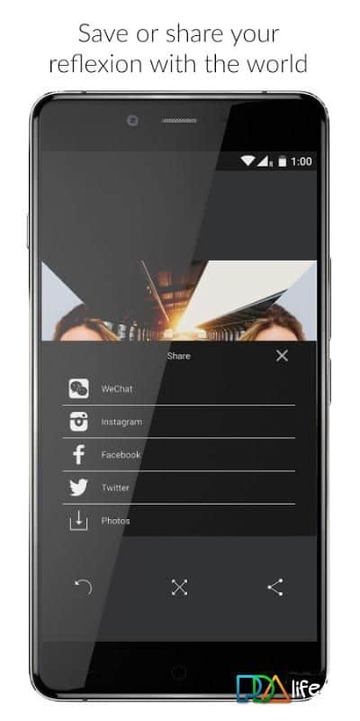 Programın özü basit: İki aşamada ön ve arka kameradan birkaç fotoğraf çekiyorsunuz, Reflexion bunları güzel bir kolajda birleştiriyor.