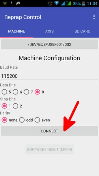 Reprap Kontrol - Bu uygulama, 3D yazıcınızı kontrol edecek basit bir arayüz sunar. Bu uygulama, 3D yazıcınızı manuel olarak kontrol etmek için grafik kullanıcı arayüzüne sahip bir G-kodu göndericisidir. HC-05, HC-06 Bluetooth Modülü ile uyumludur. İletişim ayarları - 1200 ~ 250000 Veri bitleri: 5, 6, 7 veya 8 Dur bitleri: 1 veya 2 Parite bitleri: yok, çift veya tek