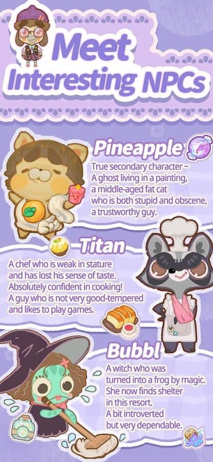Resortopia - Ana karakter Udon'un eski tatil yerini yeniden inşa etmesine ve daha sonra hizmetlerini, stillerini ve diğer olanaklarını sürekli genişleterek işletmesine yardım edin. Her ziyaretçinin tam olarak sizinle tatil yapmaya ilgi duymasını sağlayın. Tüm şaşırtıcı karakterlerle tanışın, yoğun olayları geçirin, odaları ev gibi rahat yerler haline getirin, gelen misafirlere ihtiyaç duyduklarında yardım edin ve hatta geçici olarak keyifleri olmayanlara bile hizmet verin. Alanı unutulmaz bir yere dönüştürün!