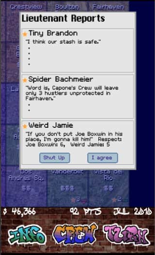 Saygı Para Güç 2: İlerleme - sizi heyecan verici dövüşler, ilginç maceralar ve suç dünyasının gerçek bir patronu olma fırsatı bekliyor. En iyi olma ve maksimum saygıyı kazanma şansını kaçırmayın! Bu, üç farklı bölgede kendi suç imparatorluğunuzu kuracağınız ve diğer gruplarla saygı, para ve güç için rekabet edeceğiniz heyecan verici bir oyundur.