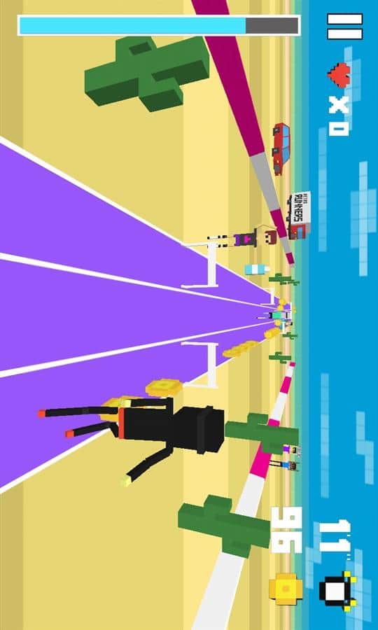 Retro Runners - 8-bit grafikle Android için bir koşucu. Bu oyunda, koşan bir karakteri kontrol etmeniz ve engelleri aşarak su birikintilerinin üzerinden atlamanız gerekiyor. Kendinize 10 inanılmaz karakterden birini seçin, her biri sonsuz enerji veya rakipleri koşu sırasında yeme gibi kendi bireysel özelliklerine sahiptir. Paraları toplayın ve koşucunuzu geliştirin veya farklı yollarla yeni seviyelerin kilidini açın.