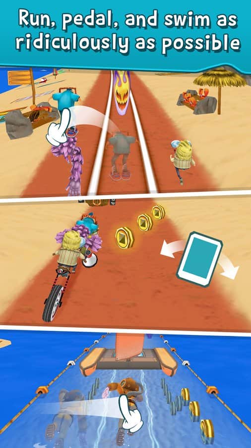 Saçma Triatlon – Koşucu – koş, yüz, kay ve tüm bunları en absürt şekillerde yap. Parlak, renkli bir arcade oyunu, burada birimprovisasyon triatlonuna katılmanız gerekiyor. Üç kahraman, üç ortam, her biri tek başına bitişe ulaşamaz, ama birlikte bunu başarmak mümkün. Farklı parkurlar sizi sıkılmaktan alıkoyacak, güzel manzaralar asıl amacınızı unutmanıza neden olmamalı. Yarışmalarınızı ciddi şekilde mahvedebilecek engellerden kaçının.