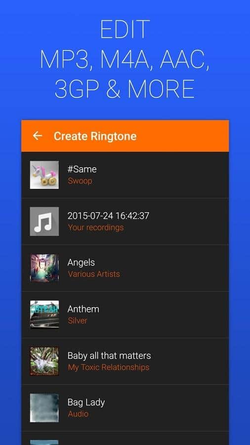 Uygulama, tüm popüler formatlarla çalışır: MP3, M4A, AAC, 3GP vb.