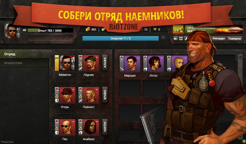 RiotZone - askeri, taktiksel bir çevrimiçi strateji oyunudur ve RPG unsurları içerir. Oyun, kanlı bir diktatörden tropikal Meranya ülkesini kurtarmak için bir grup paralı askeri yönetme şansı sunuyor. Elinizde dünyanın dört bir yanından gelen en iyi paralı askerler var. Savaşlar hem ormanlarda hem de büyük şehirlerde gerçekleşecek. Üslerinizi inşa edin ve askerlerinizin eğitim seviyesini artırın, onlara en yeni silahları satın alın, üssünüze yapılan saldırılara karşı koyun. Oyun, geliştiricilerin yüksek bir seviyede gerçekleştirdiği birçok ilginç lokasyon ve fikirle dolu devasa bir oyun dünyası sunuyor.