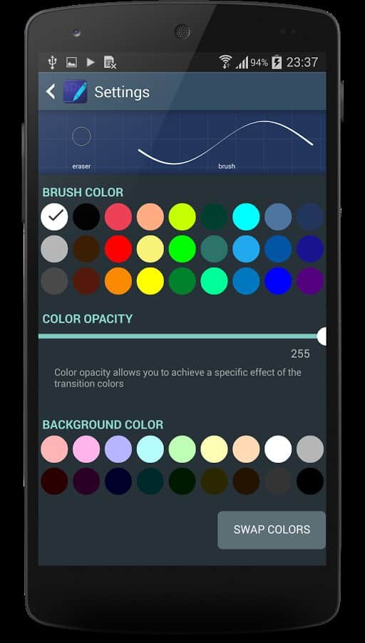 - Geri alma ve yineleme desteği, dosya kaydetme/açma, kenarları yumuşatma, sıçramaları yumuşatma, fırça kalınlığını dinamik olarak kontrol etme