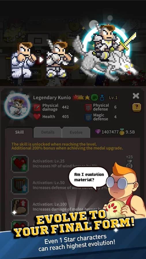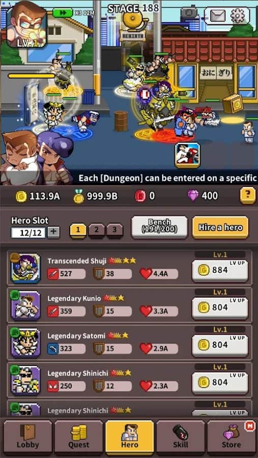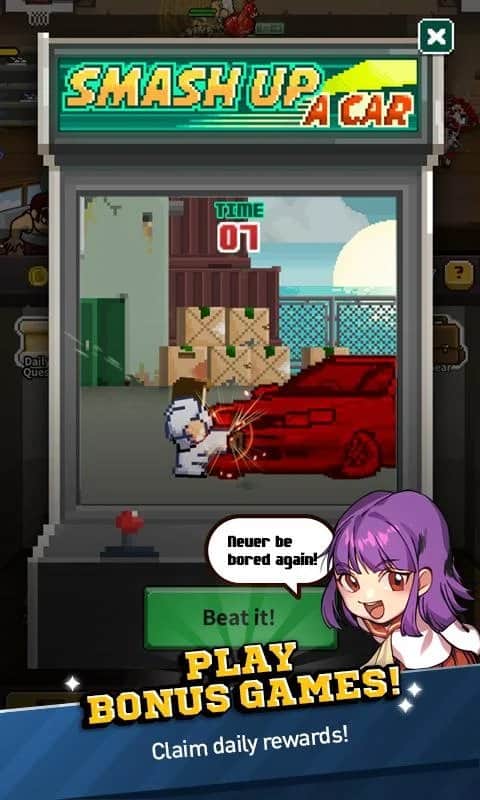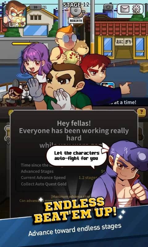 Nehir Şehri İntikamı: Kunio Dönüyor – cesur kahraman Kunio'yu yönetin, okuluna geri döndü ve orada çeteler ve kötü adamlar buldu. Ana kahramana cesur kahramanlardan oluşan bir takım oluşturmasına ve düşmanlarla savaşmasına yardımcı olun. Ekrana uygun anda dokunun ve ellerinizle ve ayaklarınızla yıkıcı darbeler indirin, güçlü düşmanları yenin. Kahramanı benzersiz ve eşsiz mekanlarda yönlendirin ve otomatik savaş işlevini kullanın. Oyunda 1000'den fazla oyun aşaması, karakterlerin benzersiz yetenekleri ve başarılar ile sıralamalar bulacaksınız.