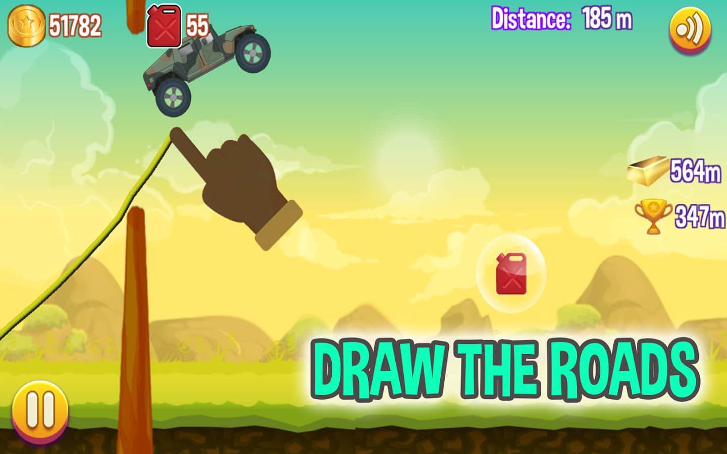 Yol Çiz - Tepe Tırmanma Yarışı – Android için bir oyundur, burada giden bir araba için yol çizeceksiniz. Oyunun amacı çok basit; parmağınızla yol çizmek ve arabayı mümkün olan en uzun mesafeye götürmek. Yol boyunca tüm engelleri ve engelleri aşın, ayrıca altın paraları ve yakıt bidonlarını toplamayı unutmayın. Arabanızın engellerle çarpışmamasına ve yolu kesmemesine dikkat edin. Oyundaki tüm görevleri yerine getirin ve size benzersiz görünümüyle keyif verecek yeni arabaların kilidini açın. Farklı lokasyonlarda hareket edin ve gerçekçi fiziğin tadını çıkarın.
