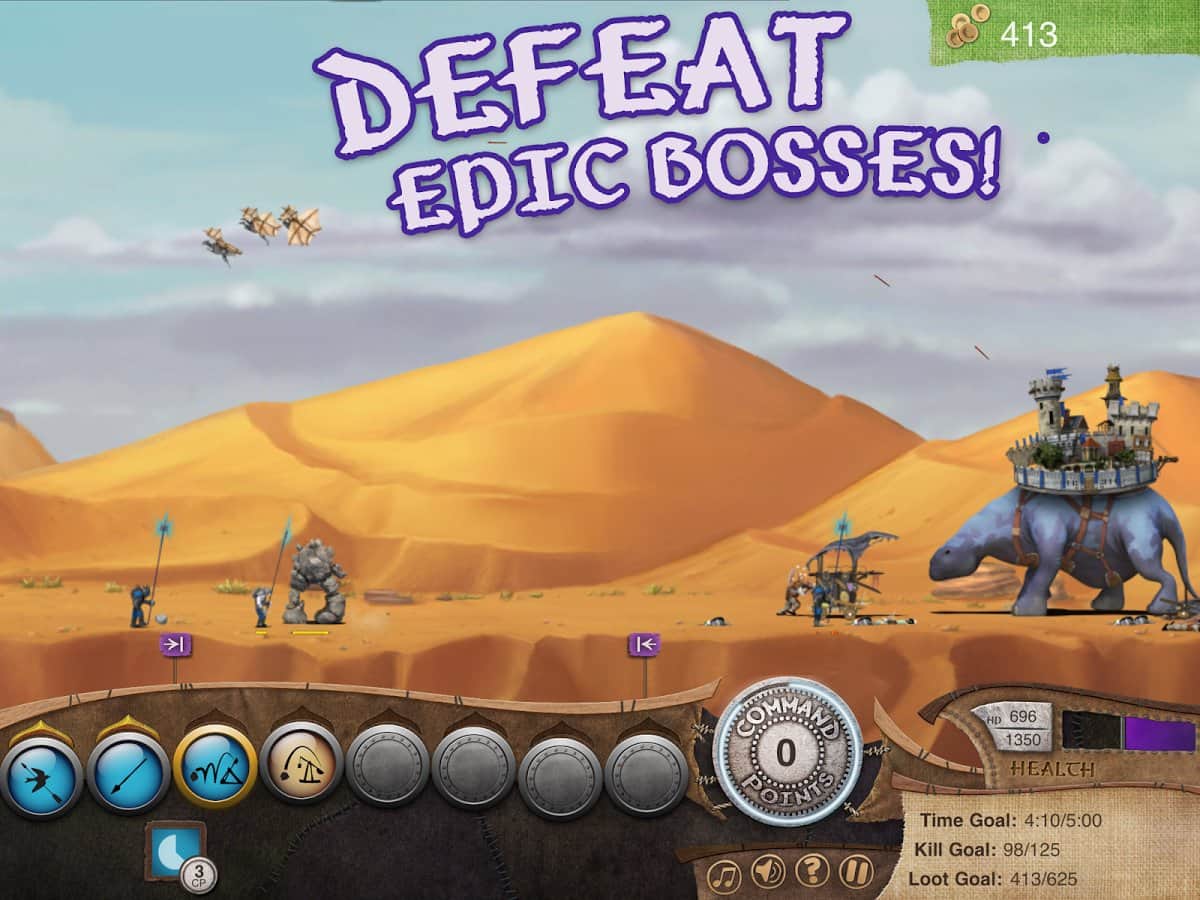 Göçebe Kalesi - bu strateji, türünün tek örneğidir, çünkü hem strateji, hem Tower Defense hem de aksiyonu bir arada sunar. Hikaye sizi bir zamanlar büyük olan krallığın kenarına gönderiyor, burada hayatta kalan şövalyeler yaşıyor. Goblin ordusuna karşı koyamadılar ve geri çekilmek zorunda kaldılar. Ancak zaman geçtikçe şövalyeler güçlenmeye başladı ve onları desteklemek için fil grubundan vahşi hayvanları evcilleştirmeyi başardılar. Savaş taktiğinizi oluşturun ve pozisyonlarınızı savunarak savaşın! Ayrıca, harika grafiklere dikkat çekmek isterim!