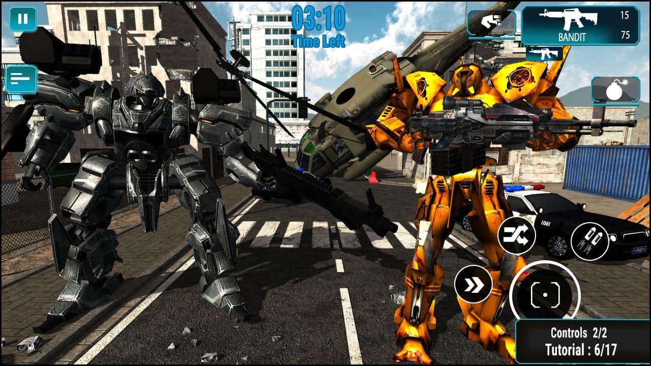 Robot Savaşçı Savaşı 2018 – robotları kontrol altına alın ve destansı savaşlara katılın. Bu oyun sizi yakın bir geleceğe taşıyacak, burada teknolojiler zamana ayak uyduruyor ve insanlar, savaş alanında onların yerini almak için savaşan robotlar icat etti. Bu tür robotlardan birini yönetin ve ninja robotları, güçlü robotlar ve savaş robotlarıyla savaşın. Savaşta yıkıcı silahlar kullanın ve robotunuzu güçlü bir silah sistemi ile donatın. Tamamlanan görevler için değerli ödüller kazanın ve yeni robotları keşfedin. En iyi sonuçları elde edin ve robotunuzu geliştirin.