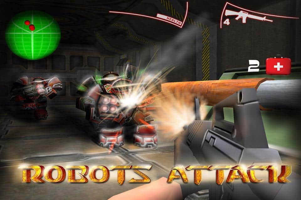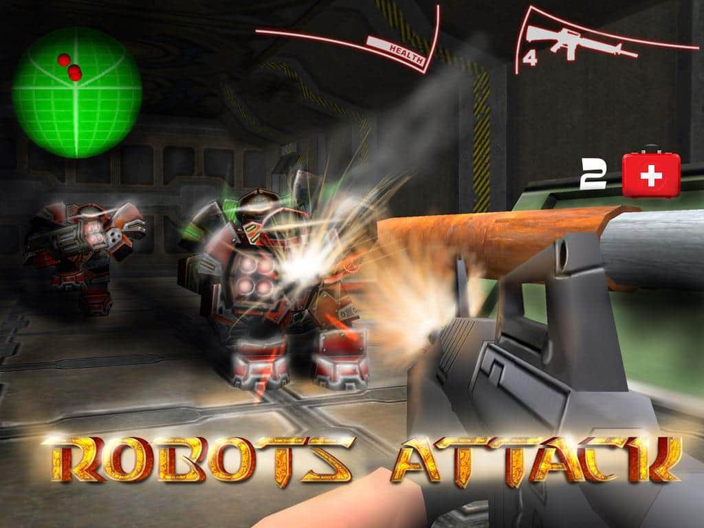 Robotlar Saldırı Shooter 3D / Robotların Saldırısı 3D shooter - Android için bir aksiyon oyunudur, burada demir robotların saldırılarına karşı koymanız gerekecek. Uzay geminiz güçlü robotlar tarafından ele geçirildi ve göreviniz onları izleyip saldırılarını geri püskürtmek. Oyunda birkaç görev var, bunları tamamladığınızda bonuslar kazanacak ve daha güçlü yeni silahlar edinebileceksiniz ve düşmanınızı bu silahlarla etkisiz hale getirebileceksiniz. Hemen oyuna başlayın ve güzel grafiklerin ve gerçekçi ses efektlerinin tadını çıkarın.