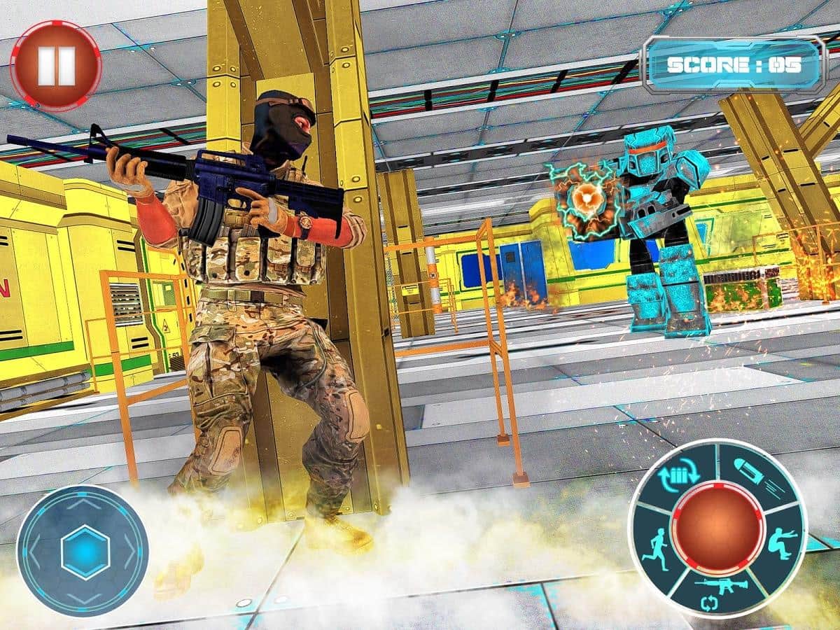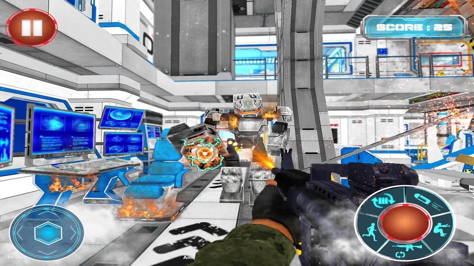 Robotlar Savaşı Uzay Çatışma Görevi – android için bir oyundur, burada elit bir birimin savaşçısı olarak rol alacaksınız. Bu oyunda, devasa bir uzay gemisinde uzaylı robotları yok etme konusunda zorlu bir misyonla karşılaşacaksınız. Gemide hareket edin ve hedefinizi takip edin. Bu oyundaki savaşçınız, robotlarla savaşmak için en modern ve yeni silahlarla donatılacaktır, onları yenmek o kadar da kolay olmayacak. Düşman sayısını akıl yoluyla aşmak için taktiklerinizi ve savaş stratejinizi geliştirin. Sığınaklar arayın ve robotlara sürekli ateş edin. Oyunun tüm görevlerini yerine getirin ve oyunda sunulan tüm silahları canlı olarak test edin.