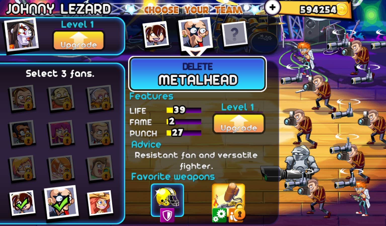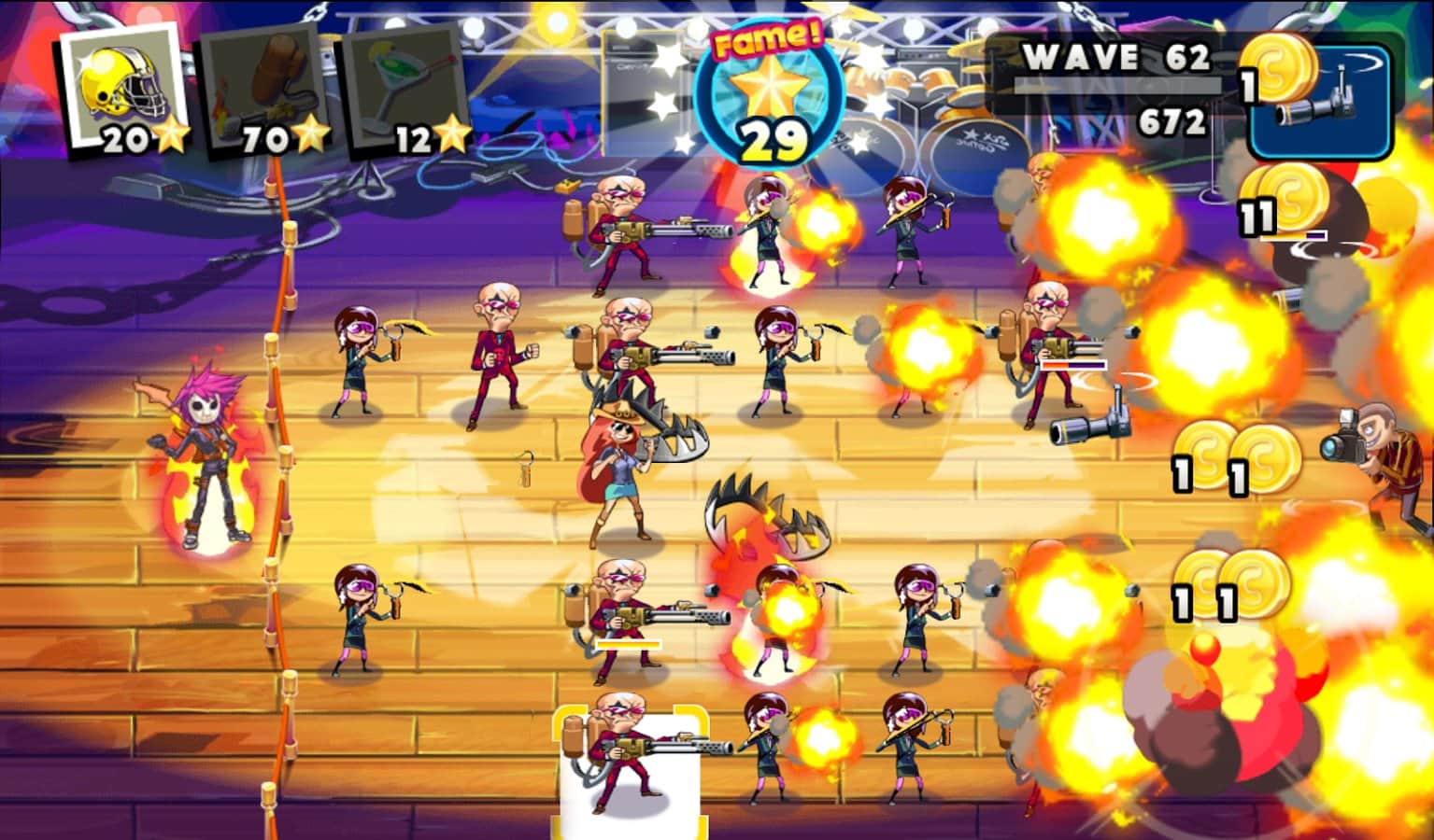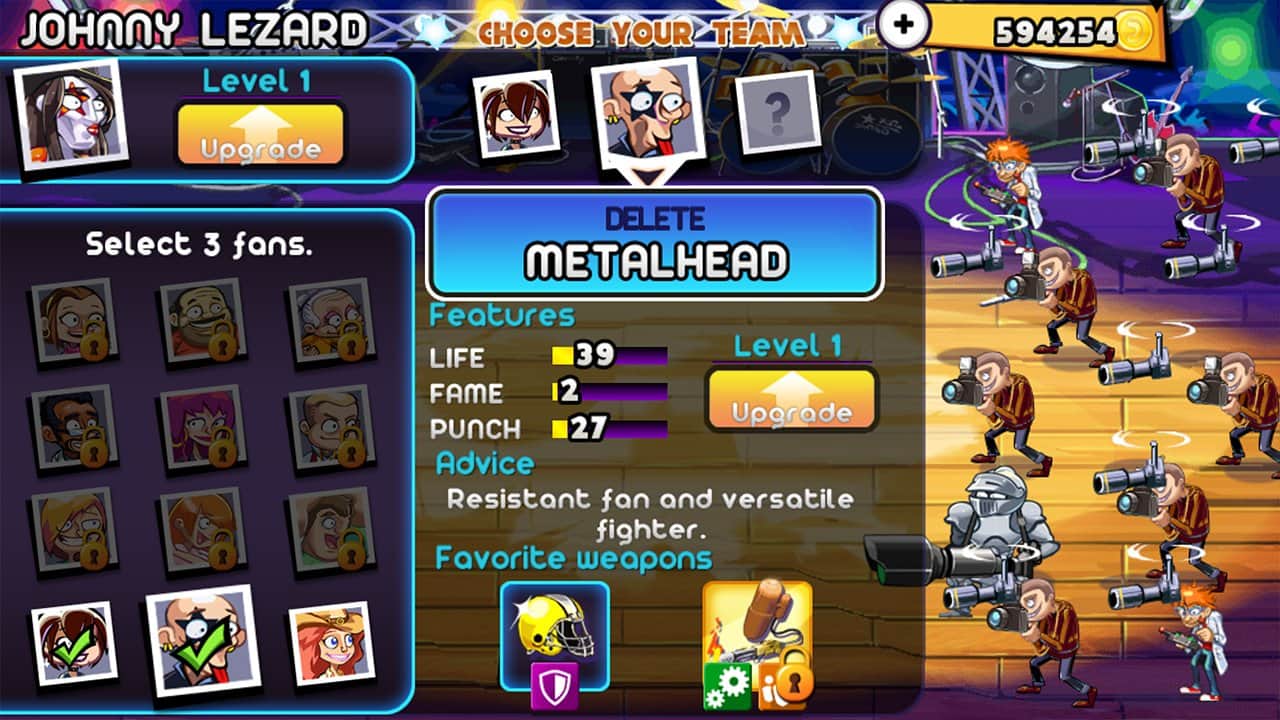 Rock Yıldızları vs. Paparazzi - Bitkilerle Zombiler oyunlarının tüm hayranlarına adanmıştır! Bu android oyunu aynı tarzda yapılmıştır, ancak bu sefer ağır rock yıldızları ve onların hayranları, fotoğraf çekmeye çalışan rahatsız edici paparazzilere karşı savaşıyor. Kendi benzersiz yeteneklere sahip hayranlarınızı sahaya yerleştirin. Çünkü sadece onlar gazetecilerin kalabalığını durduracak ve size yaklaşmalarına izin vermeyecek.