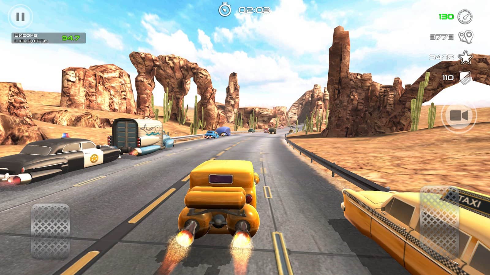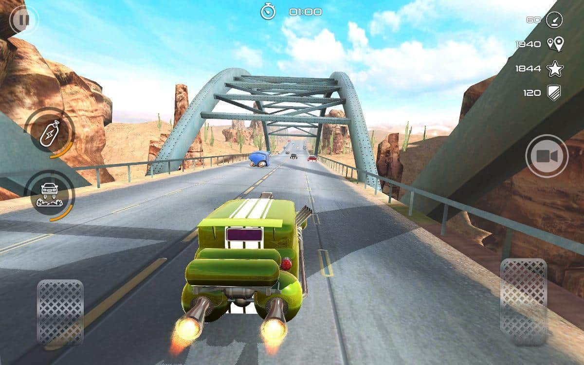 Roket Araba Yarışı - Asla Durdurma – roket motorlarıyla donatılmış retro arabalara yön verin. Bu oyunda, yerin üzerinde süzülen ve roket motoru sayesinde büyük bir hızla ilerleyen bir retro arabayı kontrol altına alacaksınız. Aşırı yarışlara katılın ve rakiplerinizle birlikte çeşitli pistlerde birinci gelmek için yarışın. Şehrin yoğun caddelerinde, kırsal otoyollarda ve çöllerde yarışın, diğer arabalarla çarpışma ve kaza yapmamaya dikkat edin. Yeni arabaları keşfedin ve koleksiyonunuzu oluşturun.