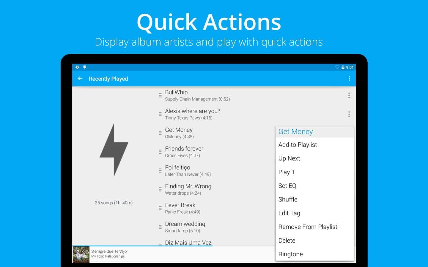 Rocket Player Premium Unlocker - görünüşte basit bir Android medya oynatıcıdır, ancak karmaşık olmayan işlevselliği ve bir sürü özellik ile sizi hoş bir şekilde şaşırtacaktır! İyi ruh hali ve sevdiğiniz müzikleri dinlemek için harika bir deneyim!