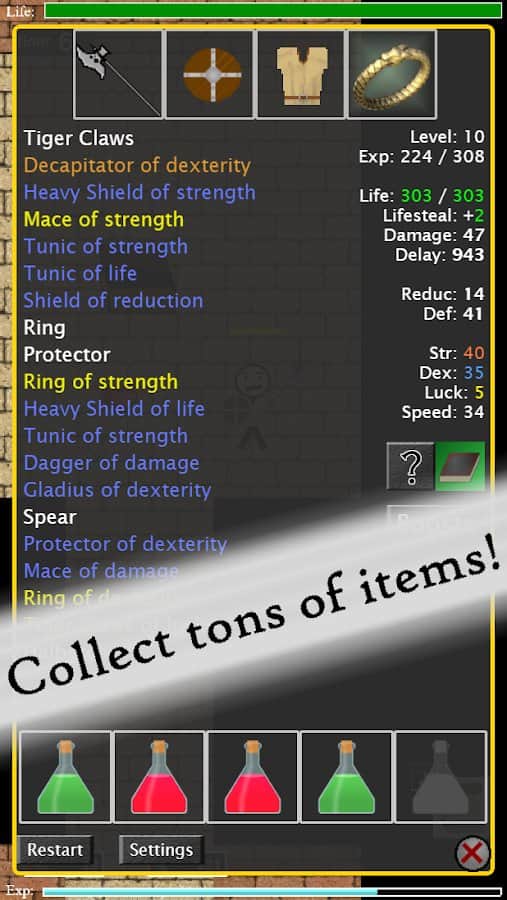 Rogue Dungeon RPG – fantastik bir dünyada, tehlikeler ve maceralarla dolu bir yolculuğa çıkın. Gücünüzü ve kuvvetinizi artırın, yeteneklerinizi geliştirin ve düşmanlar ve canavarlarla savaşmak için sihir ve silah kullanın, en güçlü patronlara ulaşın. Seviyeleri geçin, görevleri yerine getirin ve ödüller kazanın, sihirli nesneler bulun ve bunları güçlendirmeler için kullanın. Burada basit kontroller ve dinamik bir oyun deneyimi var, destansı savaşların tadını çıkarın. Sonsuz dövüş modunu açın ve kaybettiğinizde yeniden dirilmek için artefaktları kullanın.