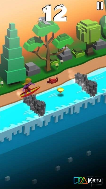 Oyun türleri sürekli gelişiyor ve bir yön ne kadar popülerse, o kadar aktif bir şekilde gelişiyor. Özellikle mobil platformlarda koşucu oyunlar bu duruma bir örnek teşkil ediyor; bu tür oyunların popülaritesi, geliştiricileri sürekli yeni fikirler gerçekleştirmeye zorlayarak oyuncuları şaşırtmaya çalışıyor. Yuvarlanan Şelaleler, değiştirilmiş bir koşucu için çarpıcı bir örnek; daha doğrusu, oyun mekaniği alışılmış tarzda yapılmış, karakteri yönetirken amacınız mümkün olan en fazla mesafeyi kat etmek, bu sırada engellerle çarpışmalardan kaçınmak ve ödüller toplamaktır. Değişiklikler, daha çok oyunun dış görünümünü etkiledi; izometrik kamera yerleşimi ve görüntü, adeta kesit şeklinde sunulması, Yuvarlanan Şelaleler'e oldukça orijinal bir görünüm kazandırıyor.