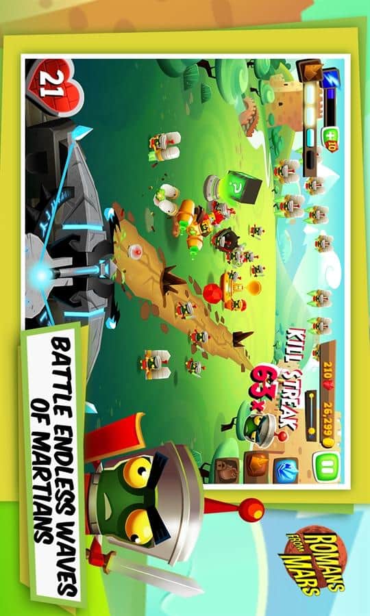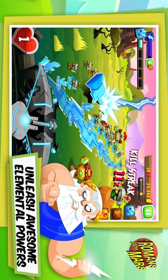 Mars'tan Romalılar - Windows Phone için bir oyun, burada bir Romalı asker olarak Marslıların dünyaya saldırısını engelliyorsunuz. Neyse ki, tanrı Jüpiter dünya halkının yanındadır. Onlara ateş, buz, toprak ve ışık gibi çeşitli unsurlarla yardımcı olur. Güçlü tanrının yardımıyla, bir dalga Marslıyı diğerinin ardından geri püskürtmelisiniz ve son kalenizi ele geçirmelerine izin vermemelisiniz. Oyunda hoş bir 3D grafik ve ilgi çekici bir oyun deneyimi var.