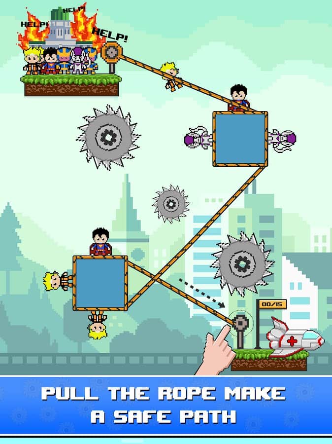 İp Piksel Ustası - Bazen süper kahramanlar bile yardım çağırır. Böyle durumlarda, yanlarında siz olmalısınız. İpi, bağlantıları alın ve felaket yerine gidin, tanınmış karakterleri tuzaktan kurtarın. Ne yazık ki, yaşamı tehdit eden bir tehlikeden kurtulmak için yolunuzda çok sayıda yeni engel belirecek. Paniğe kapılmayın ve her türlü engeli ortadan kaldırmak için adımlarınızı hemen düşünün. Farklı yerlerde 200'den fazla seviyeyi geçin, oyundaki tüm modları deneyin ve dünya kahramanları için yedek kurtarıcı olun.