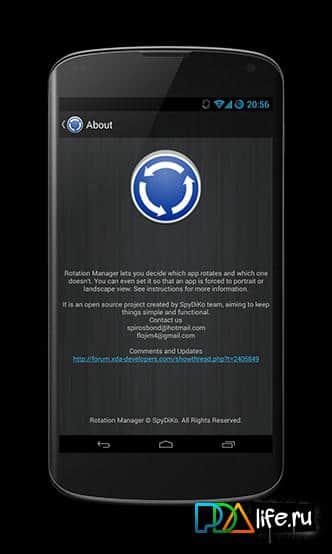 Dönüş Yöneticisi/Kontrol – denildiği gibi "her şey basit bir şekilde harikadır", burada da basit ve bazen gerekli bir programdır, Android için uygulamaların otomatik döndürme yöneticisi olarak portre/yatay modda açma ve kapama veya her iki modda otomatik döndürme imkanı sunmaktadır. Kullanın!