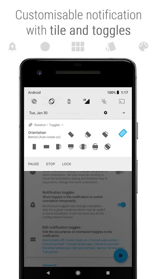 Dönüş - Yönlendirme Yöneticisi, cihazların ekran yönlendirmesi için harika bir yönetici, birçok olanakla dolu. Bununla birlikte, talep üzerine döndürme, zorunlu otomatik döndürme, mevcut yönlendirmeyi kilitleme ve daha birçok mod gibi modları ayarlayabilirsiniz. Ayrıca, Dönüş - Yönlendirme Yöneticisi uygulama ayarları, bildirimler, widget'lar ve yönlendirme modları hakkında ayrıntılı bilgi içeren bir öğretici içerir. İyi kullanımlar.