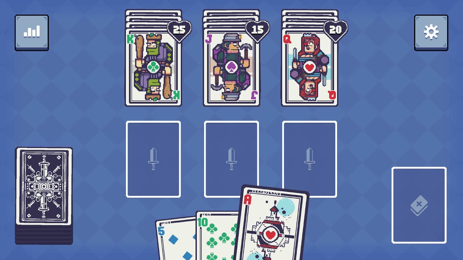 Kraliyet Kart Çatışması - kartlarla ilgili yeni bir Roguelike oyun. Bu oyundaki amacımız, kraliyet kişisi olmasa da rakibin kraliyet kişilerini yok etmek için kartlarımızı kullanmaktır. Ancak tüm kartlarınızı harcamayın - miktarı sınırlıdır. Oyunda hem yeni başlayanlar hem de profesyoneller için birkaç zorluk seviyesi bulunmaktadır. Hadi kralları devirelim!