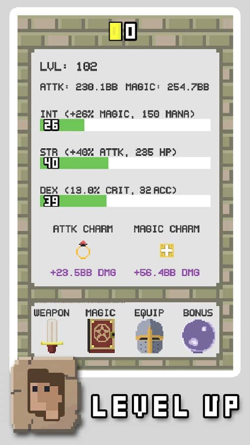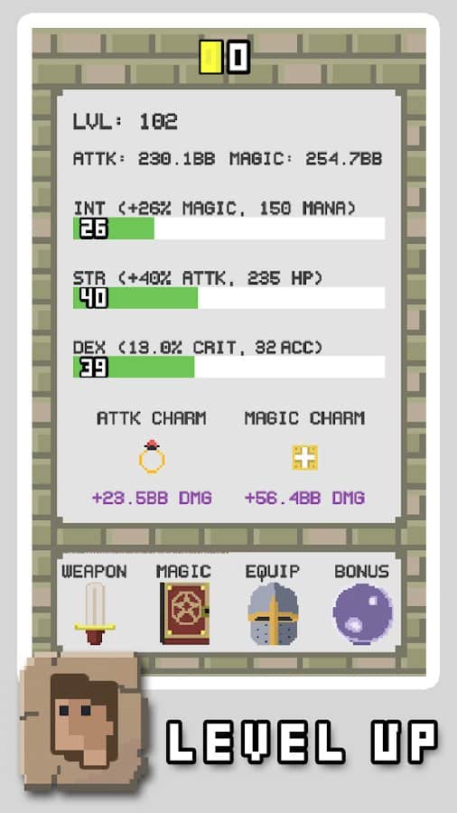 RPG Tıklayıcı - Ekrana parmağınızla dokunarak önünüzde bulunan canavarlara saldırın ve savaşa başlayın! Gelişeceğiniz bölge hakkında daha fazla bilgi edinin ve hemen şimdi yeni büyüler öğrenmeye başlayın. Oyun, savaşlarda gerekli sonuçlara ulaşma ilerlemenize bağlı olarak daha iyi hale gelen özel bir prestij sistemi geliştirmiştir. Telefon ekranına ne kadar çok tıklarsanız, saldırınız o kadar iyi olur.