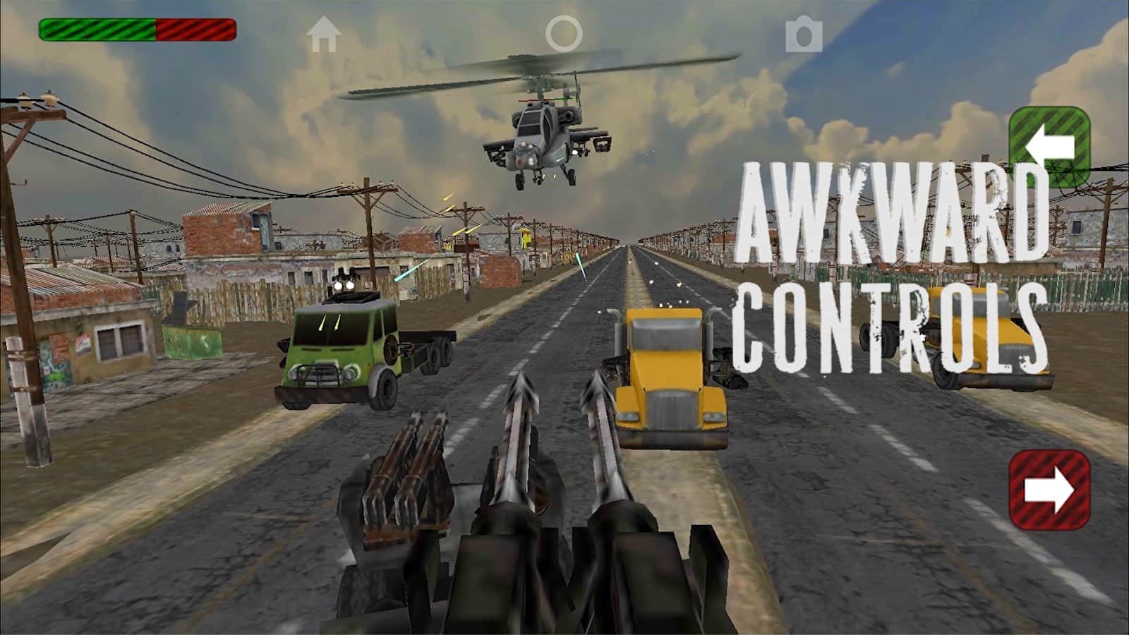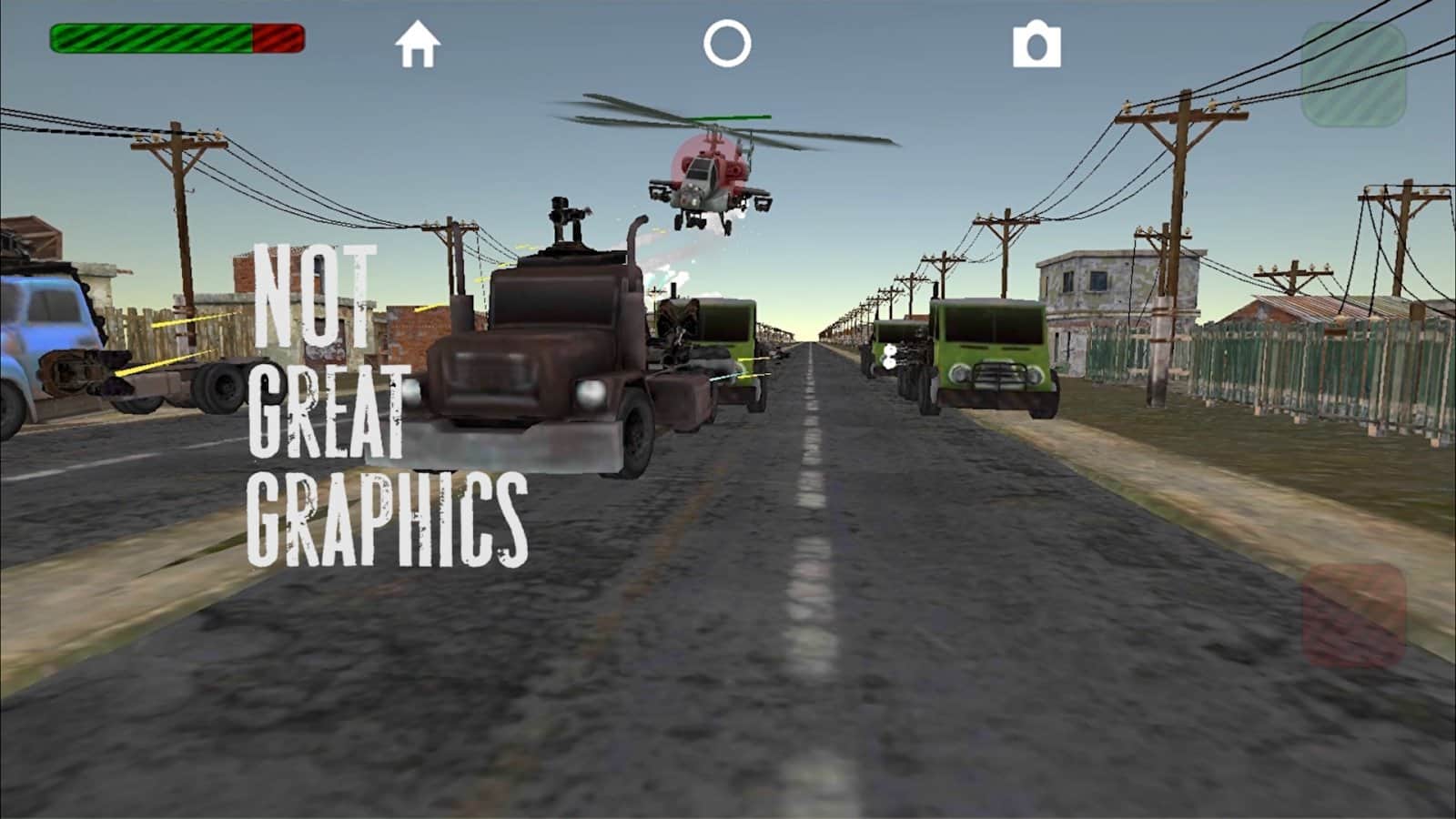 Kamyonlar ve Silahlar: Sonsuz Yol Savaşı – Sonsuz Koşucu ve Koş ve Ateş et türlerinin karışımı. Oyunda zırhlı, silahlarla donatılmış bir kamyonun sürücüsü olacaksınız. Aracınızı geliştirin, üzerine mümkün olduğunca fazla silah yerleştirin ve yolunuza çıkan herkesi yok ederek mümkün olduğunca uzaklara gidin! Geniş bir makineli tüfek, roketatar ve kamyon seçeneği sizi yolda en iyi yapacak, derecelendirme sistemi başarılarınızı arkadaşlarınızla paylaşmanıza olanak tanıyacak, minimalist grafikler oyunu neredeyse her akıllı telefonda başlatmanıza izin verecek. Koşucu ve çılgın yarışlar türlerinin karışımı.